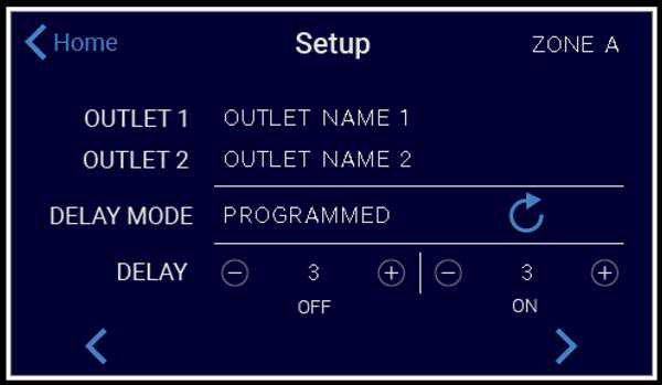 P12还可以设定每一组电源区域(A,B,C,D)个别插座输出的名字、每组区域的开关机延迟时间(DELAY),原则上开机是讯源先开后,再开前级、后级、关机时则是反过来。
