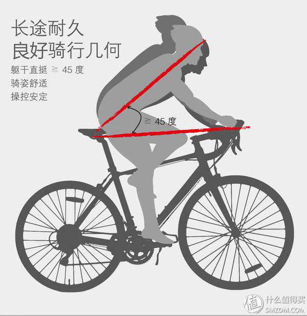 躯干角度越大,骑行姿势越休闲,也就更加放松舒适,越小,躯干越接近水平,能获得更小的风阻,提高速度。通勤和健身骑行,还是应当以舒适为主,更重要的是,过低的躯干角度会影响我们观察路况,这在郊区跟着队伍骑行时不是问题。但在环境险恶的市内通勤就变得很危险了。这也是我不建议骑公路车通勤的原因。当然躯干角度也不能太大,90度的话那就是公主车了。