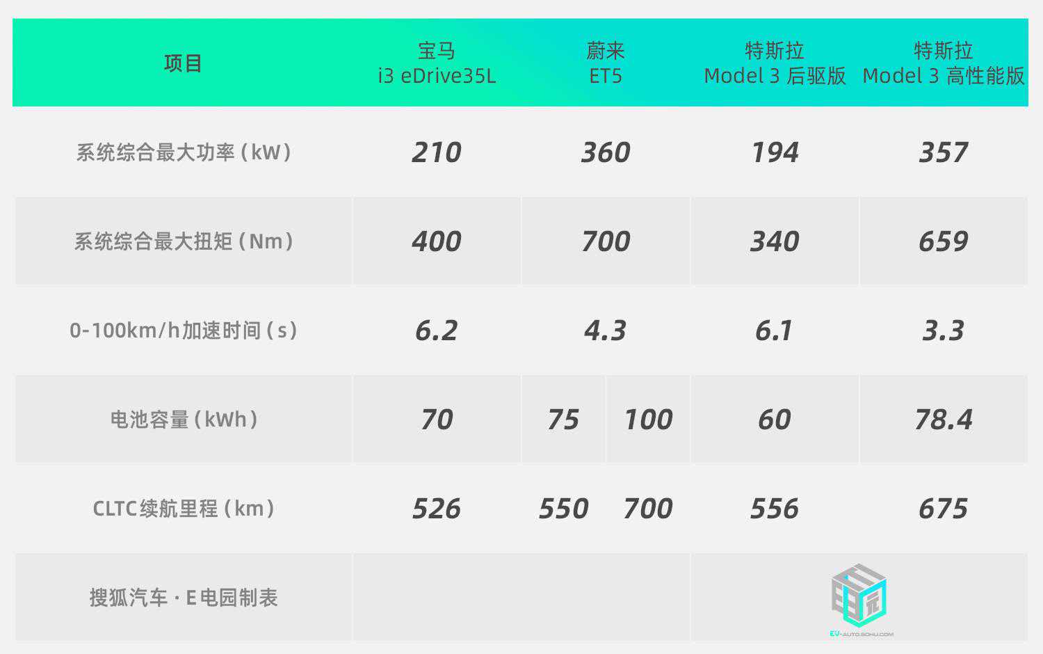 看到这,有观众可能会说了:“这参数不挺好的么,6.2s不慢了,526km也足够用了,又不天天跑长途。”确实,如果只看i3一家的参数可能确实觉得还可以,但有对比才有伤害,我们来看看另外两台车的数据。