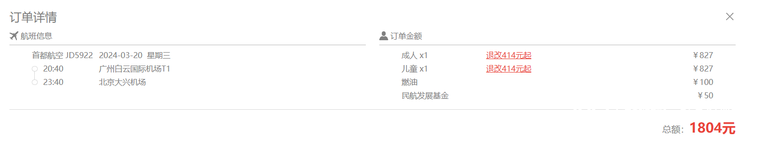 随后,记者又登录了首都航空官网对该航班订票,官网售票显示成人票与儿童票同价,且支付订单页显示售价相同。