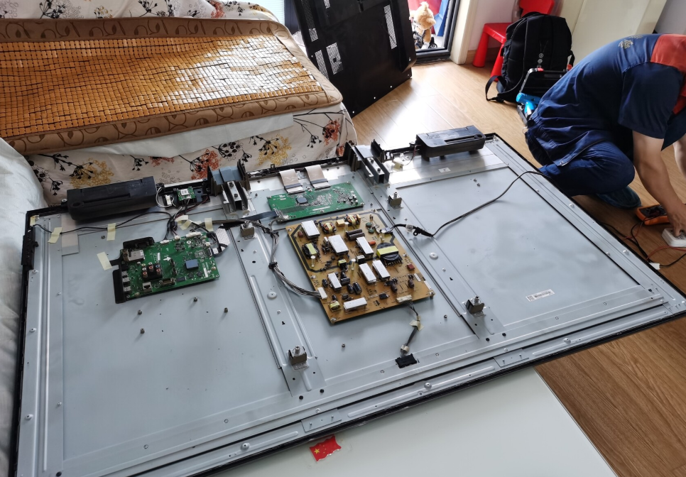 而近期,家里的电视突然坏了,师傅上门检测后说是屏幕有问题!原因已经查出来了,被小孩子敲了液晶面板的角落导致漏液损坏!