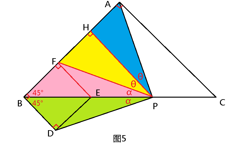 解题思路(5):过点E作EF⊥AB,垂足为F(图5),则四边形EFBD为正方形。