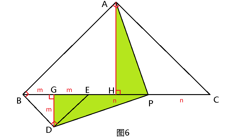 解题思路(6):作AH⊥BC,DG⊥BE,垂足分别为H、G(图6)。