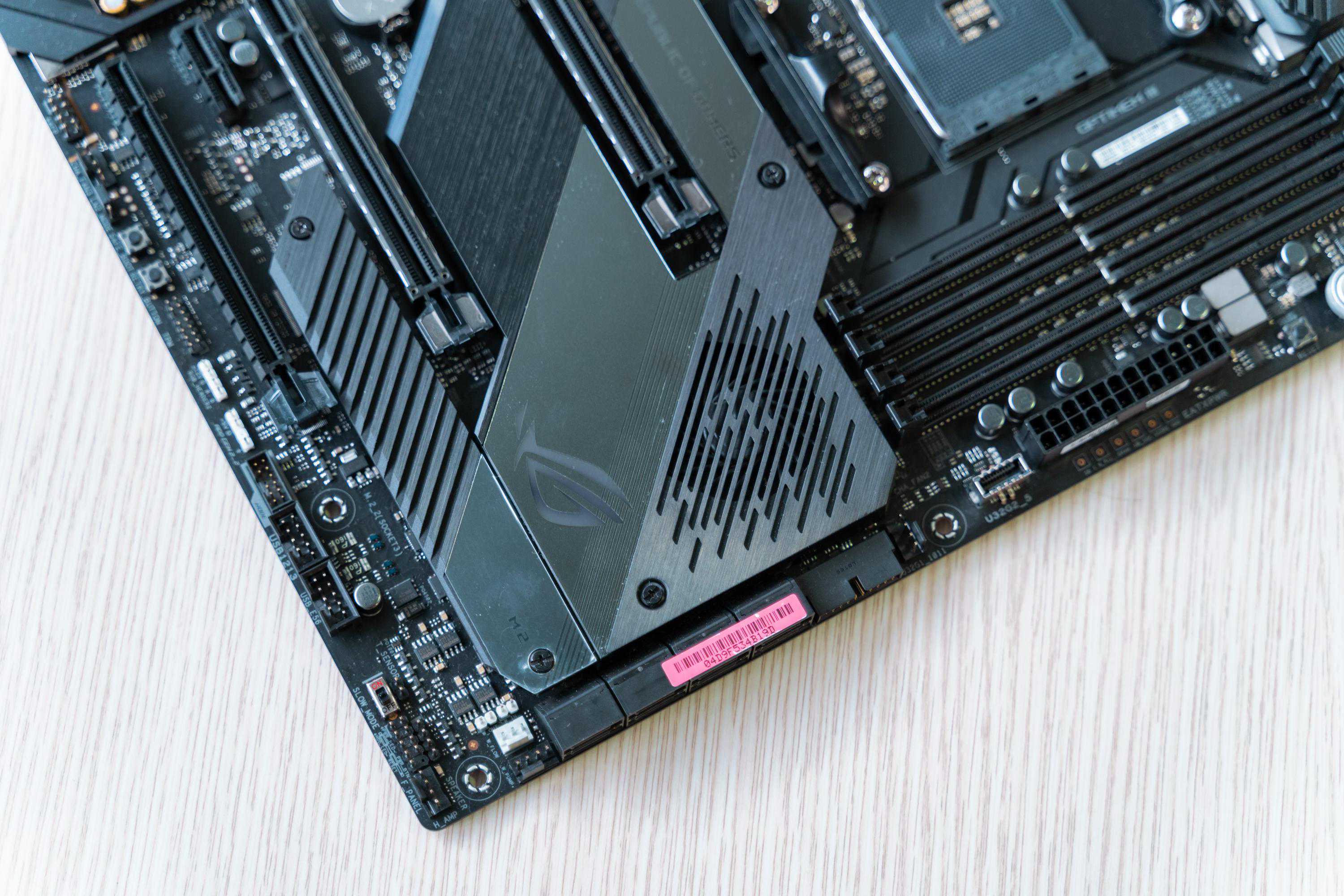ROGC8H是ATX版型,尺寸为30.5,采用了非常扎实的14+2相供电和8层PCB设计,供电接口为8+4pin,拥有两个支持的插槽。相比前代,最直观的感受就是包裹几乎整个面板的大面积散热装甲。
