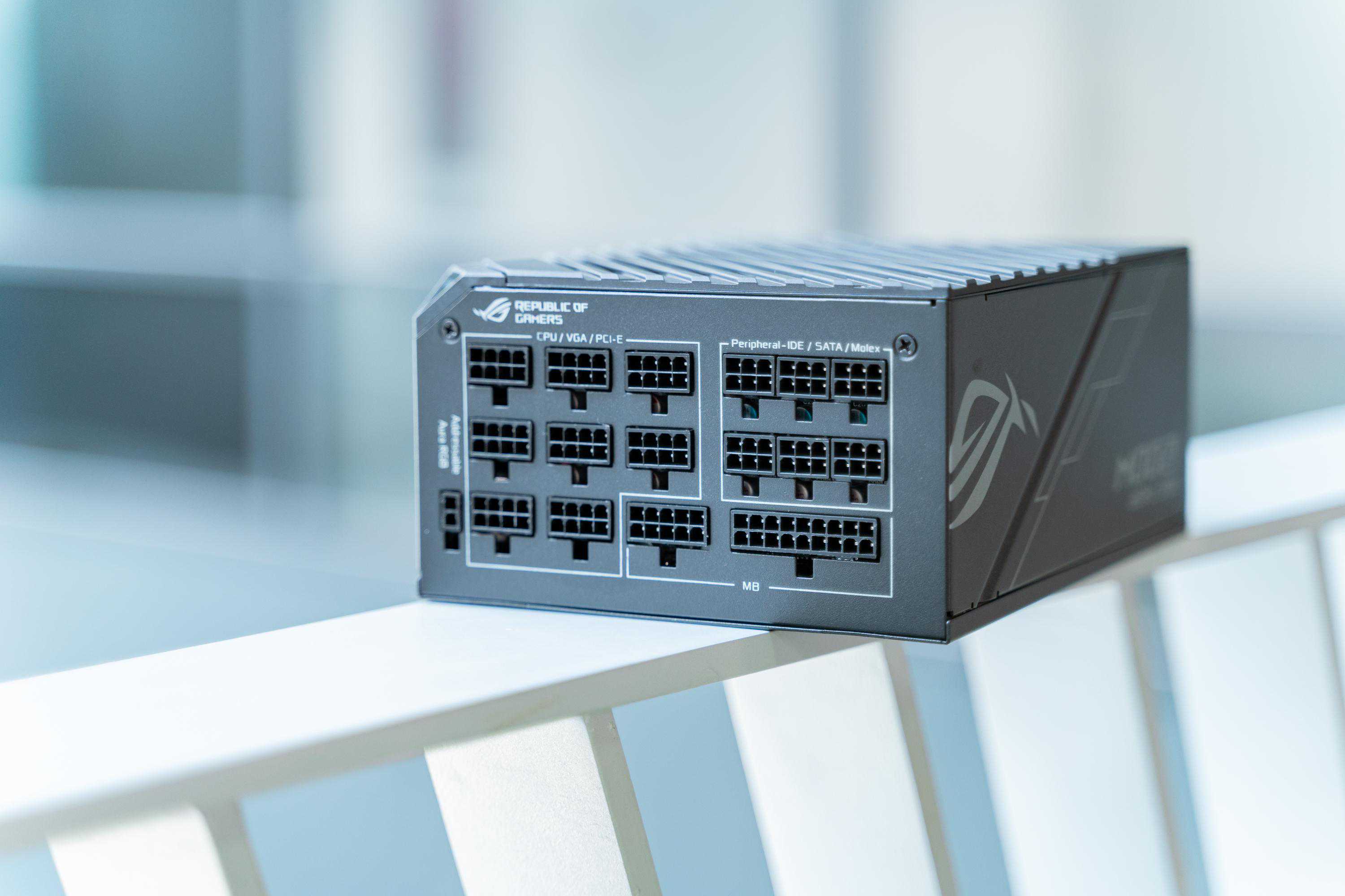 本次攒机的最后一个零件就是这颗ROG雷神1200W80PLUS白金认证电源,ROG开创性地给这颗电源加入了一个OLED显示屏,可以实时显示功耗,不光如此,这颗电源还带有信仰灯支持AuraSync神光同步。