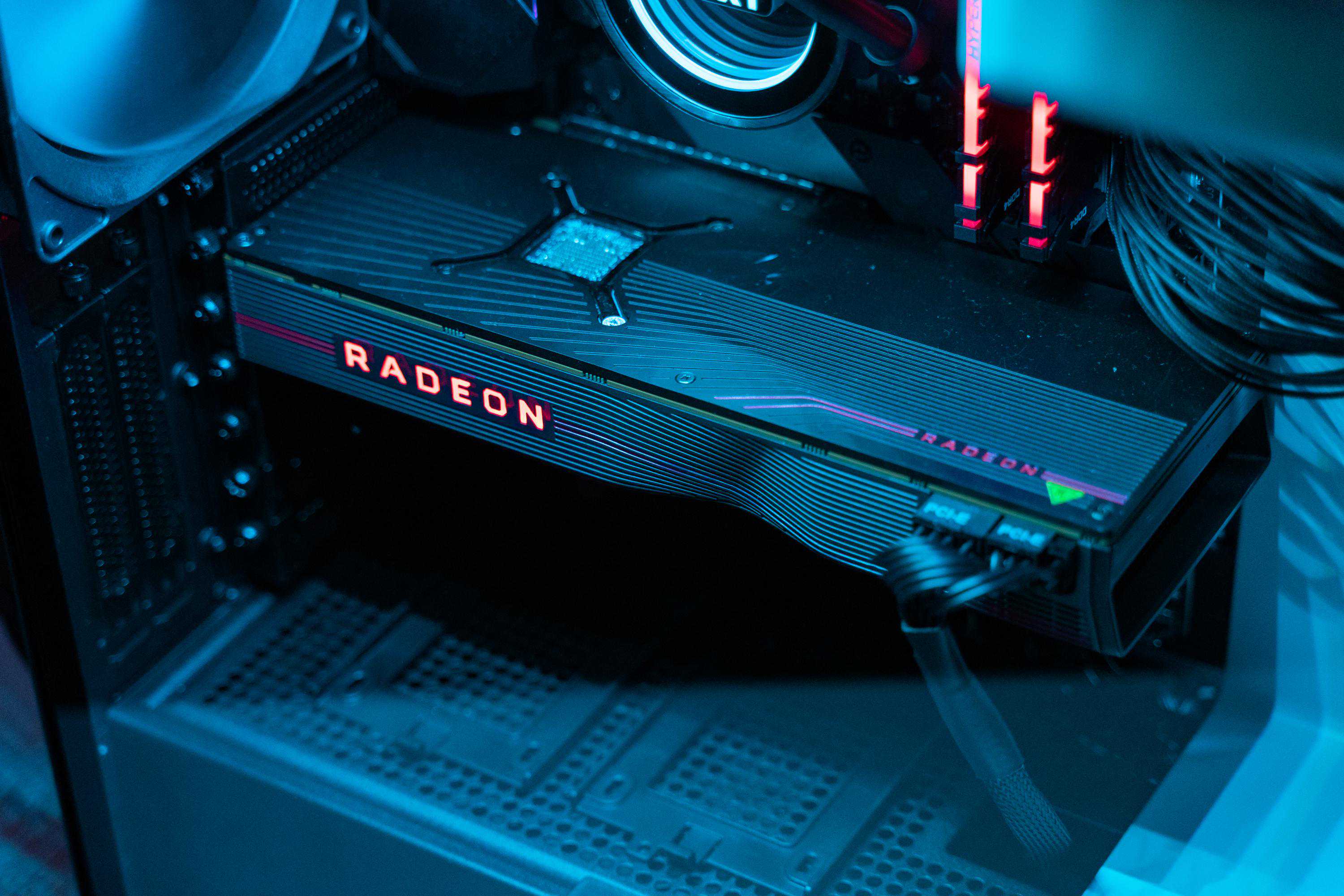 5700XT的公版信仰灯,通过侧透玻璃显出带感的重影效果。