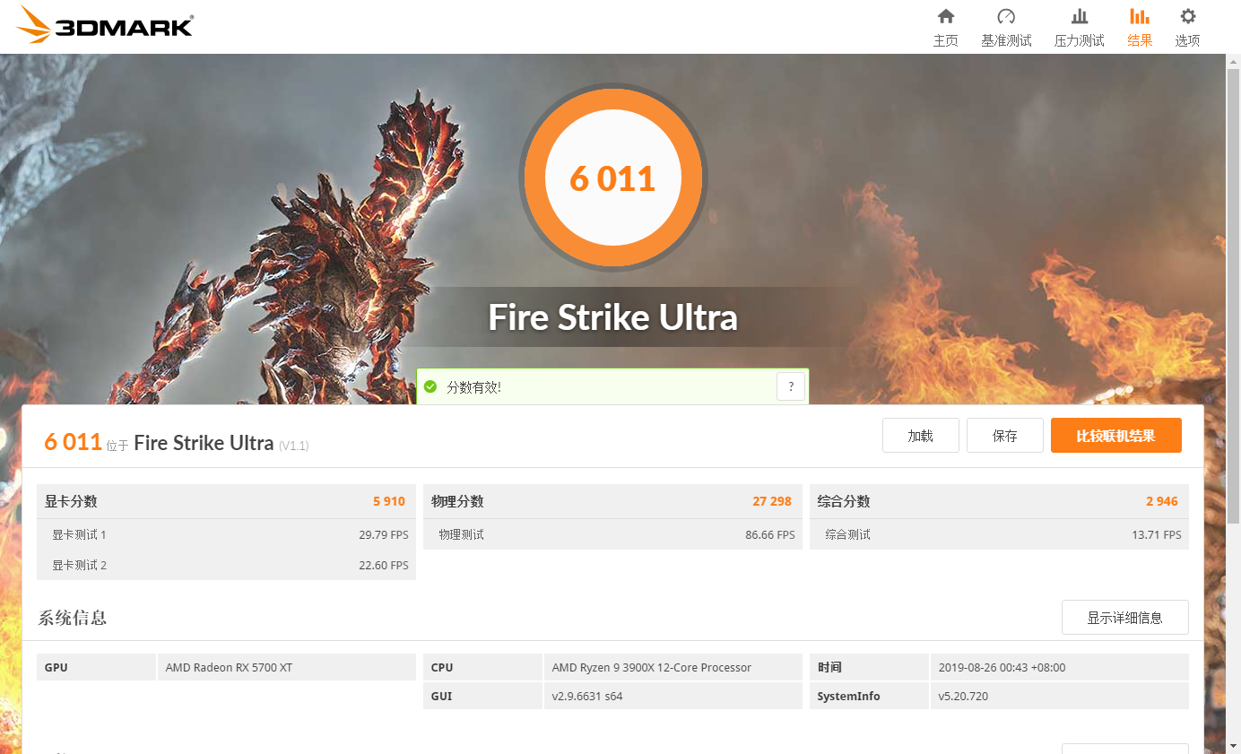 3DMARK测试,TimeSpy、FireStrikeUltra和Extreme三项测试分别体现了RX5700XT在DX11和DX12下的性能表现,和公版频率的RTX2070SUPER的性能表现完全持平。