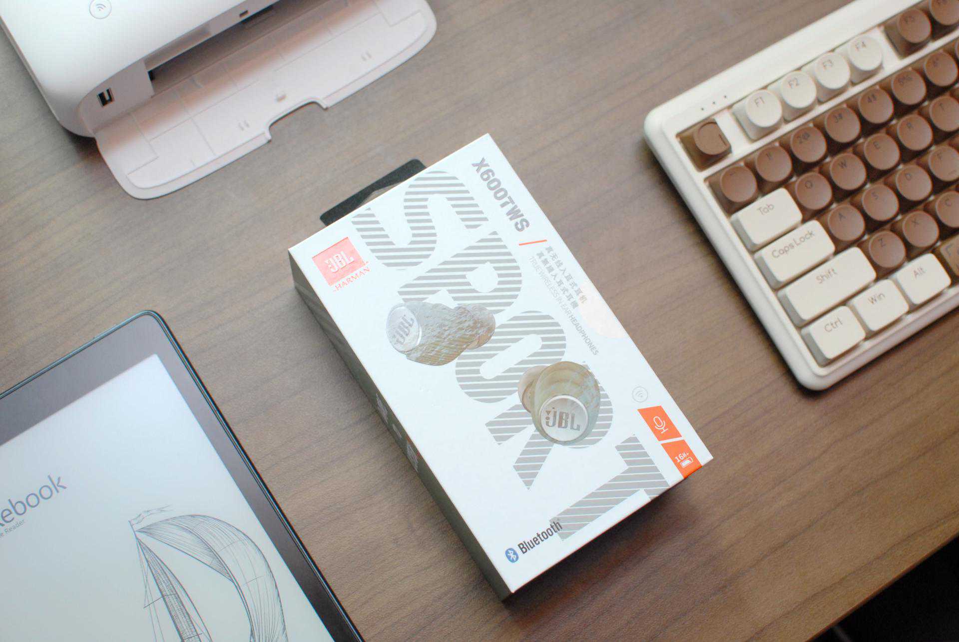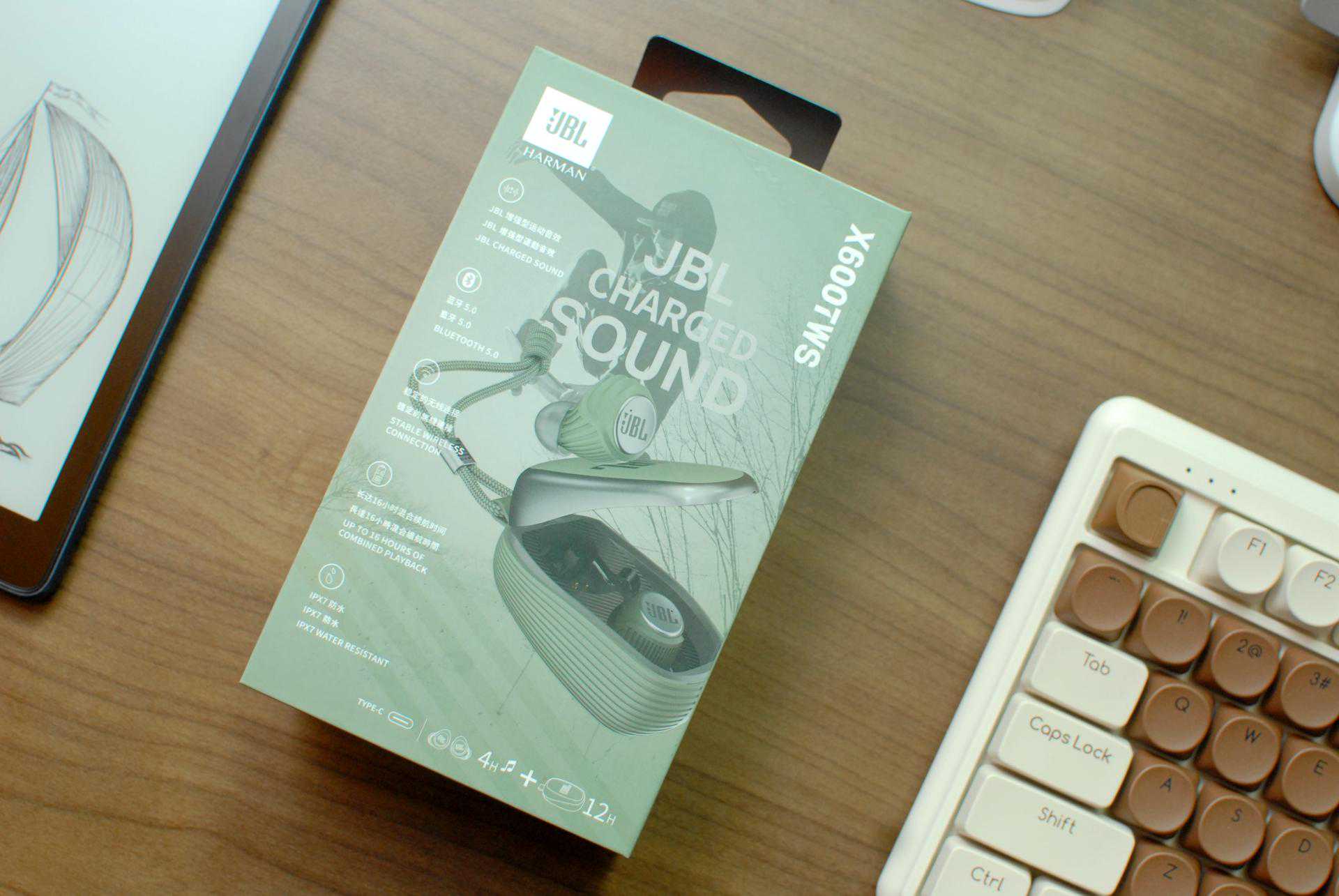 说体验之前,先给产品简单开个箱,包装上大家也可看到JBLX600TWS真无线运动耳机的样式,采用了无翼轻量化入耳的设计,在造型上并不算特立独行,但也符合大众审美需求。