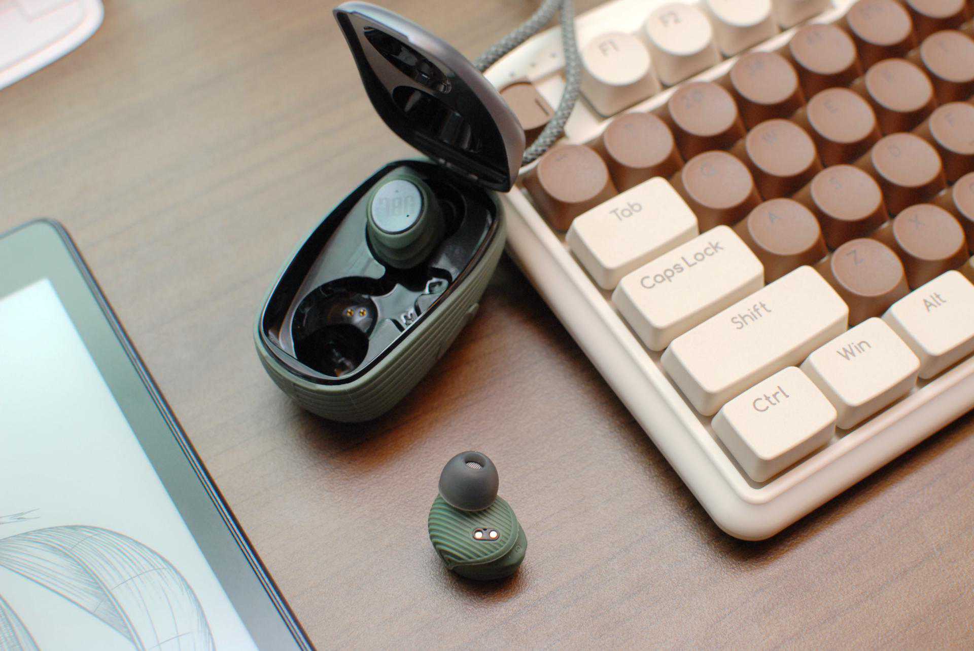 JBLX600TWS真无线运动耳机共有四款配色,分别是陨石黑、琥珀黄、森林绿以及熔岩红,额~~我这款是森林绿,嗯~~想要生活过得去,身边必须带点绿,所以你们懂的!