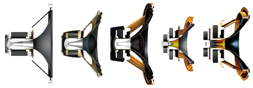 1967年推出第一代的“金监听”已超过半世纪,最新的SGM“超级金监听”使用单元自然有很多不同,外观可见的包括单橡胶悬边改成双折环布边;高音加上“郁金香”型波导器,这个1990年代以3D建模制作的波导器当时可是黑科技;最重要的是同轴的共享磁体变成二个独立的磁体斤