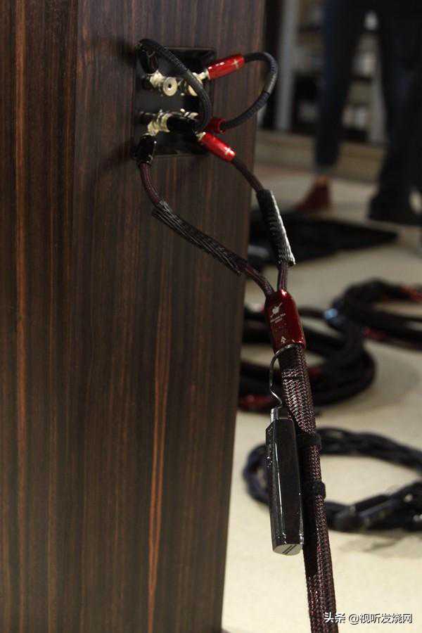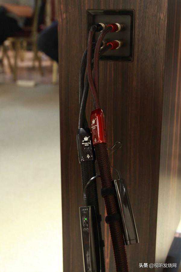 到了产品培训部分,施先生首先简单的介绍了线圣推出的Niagara电源处理器,施先生拿出了一台便携式的EMI电磁干扰测试仪,比对了墙插与经过Niagara电源处理器处理后的电源情况,非常明显杂讯和干扰得到了明显的扼制,效果极其明显,从检测到的数据显示EMI干扰被降低了十倍。十二个插座被分为大电流、模拟、数字三组。现场比对听感也可以很清晰的感受到效果。而目前AQ线圣的产品分为AnalogInterconnects、DigitalInterconnects、HDMICables、SpeakerCables、ACPower、DAC、Headphones、Accessories几个大类。电源线部分则分为NRGSeries能量系列、WindSeries风系列和StormSerie风暴系列,每个系列都有若干型号。其中最亮眼之处是售价高达196000元的神兽系列DragonZero(龙)喇叭线及售价高达32500元的风暴系列DragonHighCurrent(巨龙)。这两组线材代表了当今AudioQuest最顶尖技术。此两大系列产品目前位于AudioQuest产品链的最顶端。施先生也为来宾一一作了现场演示。