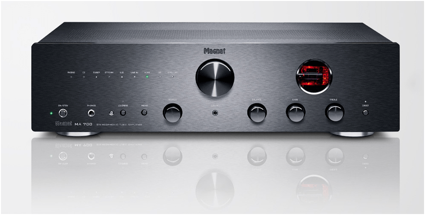 MA700是一台稳定输出,带电子管前级放大和高性能晶体管输出的混合式功放。前级放大部分采用两支来自俄罗斯的ECC-81电子管,确保整个系统提供温暖而细腻的声音表现。功率方面MA700在4Ω负载下每声道输出为70W,8Ω负载下则为50W。MA700采用了黑色全金属外壳打造,正中央大尺寸的音量旋钮手感舒适有气派,带有阻尼橡胶的金属脚座令器材摆放非常平稳同时具备减震特点。