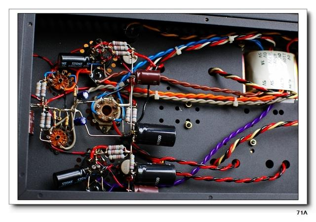 这一台是亲手打造的71A扩大机,功率不到一瓦,声音却是有着无限的魔力与魅力。上头得茄子形真空管是1932年出厂,天啊73岁了,老爷级的管子了。