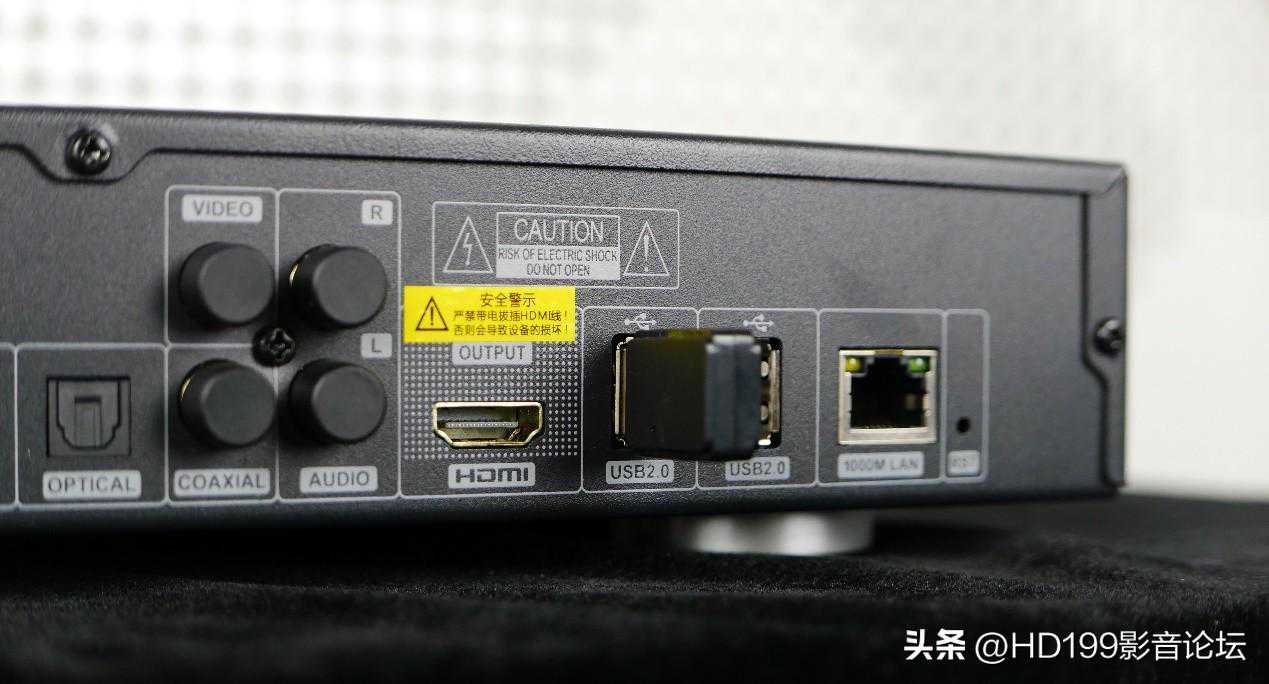背面的主要的接口,包括一个输出,两个接口,USB口支持直读,可以用来外接U盘、移动硬盘等外部存储。