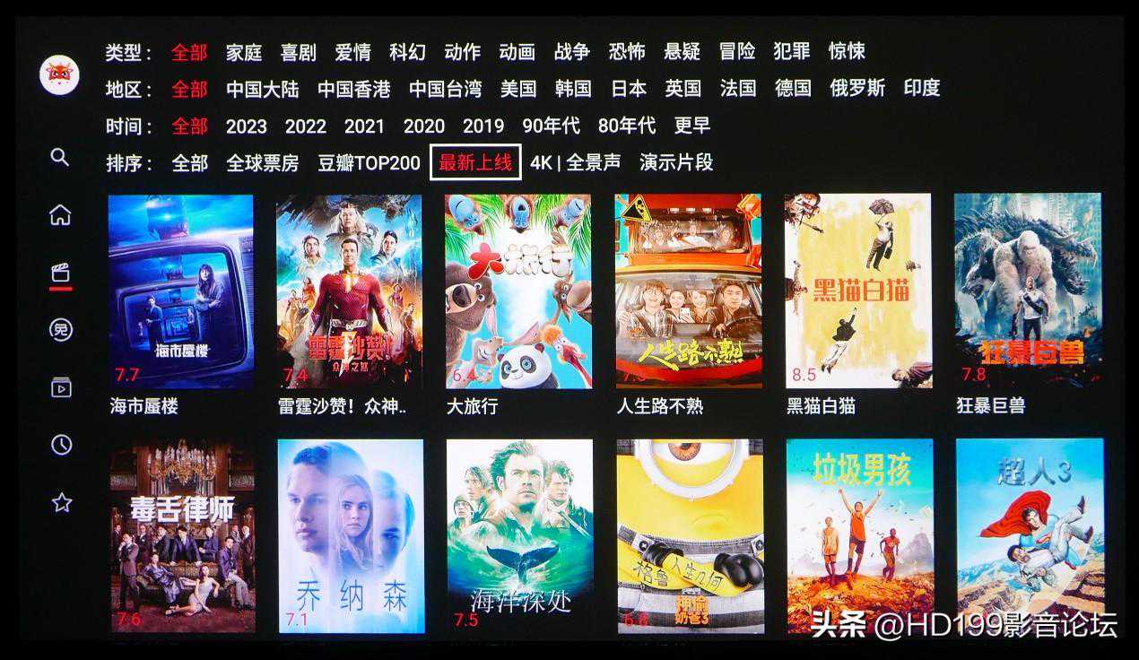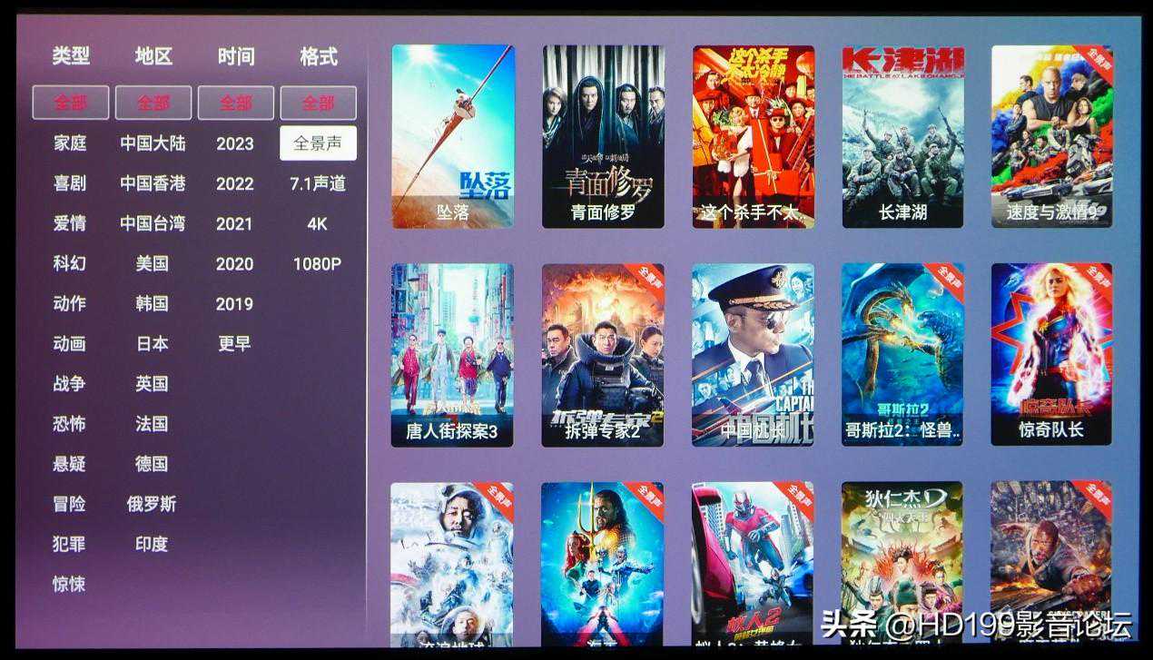 而另一栏的【蓝光影院】,这里的片源规格就比较高了,主要是4K以及全景声的片源,但正因为它的资源大多要等蓝光光盘发行,更新速度没有在线影院快。这样在线影视和蓝光影院正好能彼此互补,对用户来说有更大的选择空间。