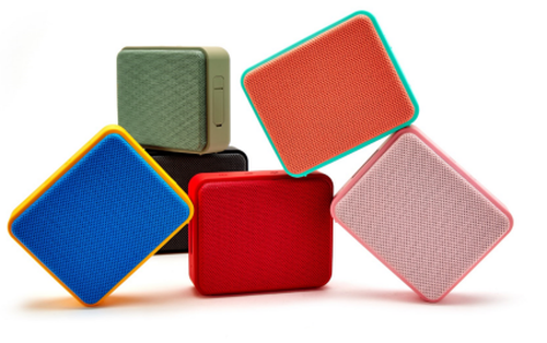 JamoCub尊宝小方盒便携式蓝牙音箱打破尊宝Jamo原本简约设计风格,机身小巧玲珑仅250克,轻松外出携带。而靓丽多彩的配色着实抓人眼球,除了有红、黑、粉、军绿4款纯色产品外,还推出了2款强烈多彩的撞色组合——蓝黄及橙绿,6款颜色整体呈现出乐观且充满活力的设计感。