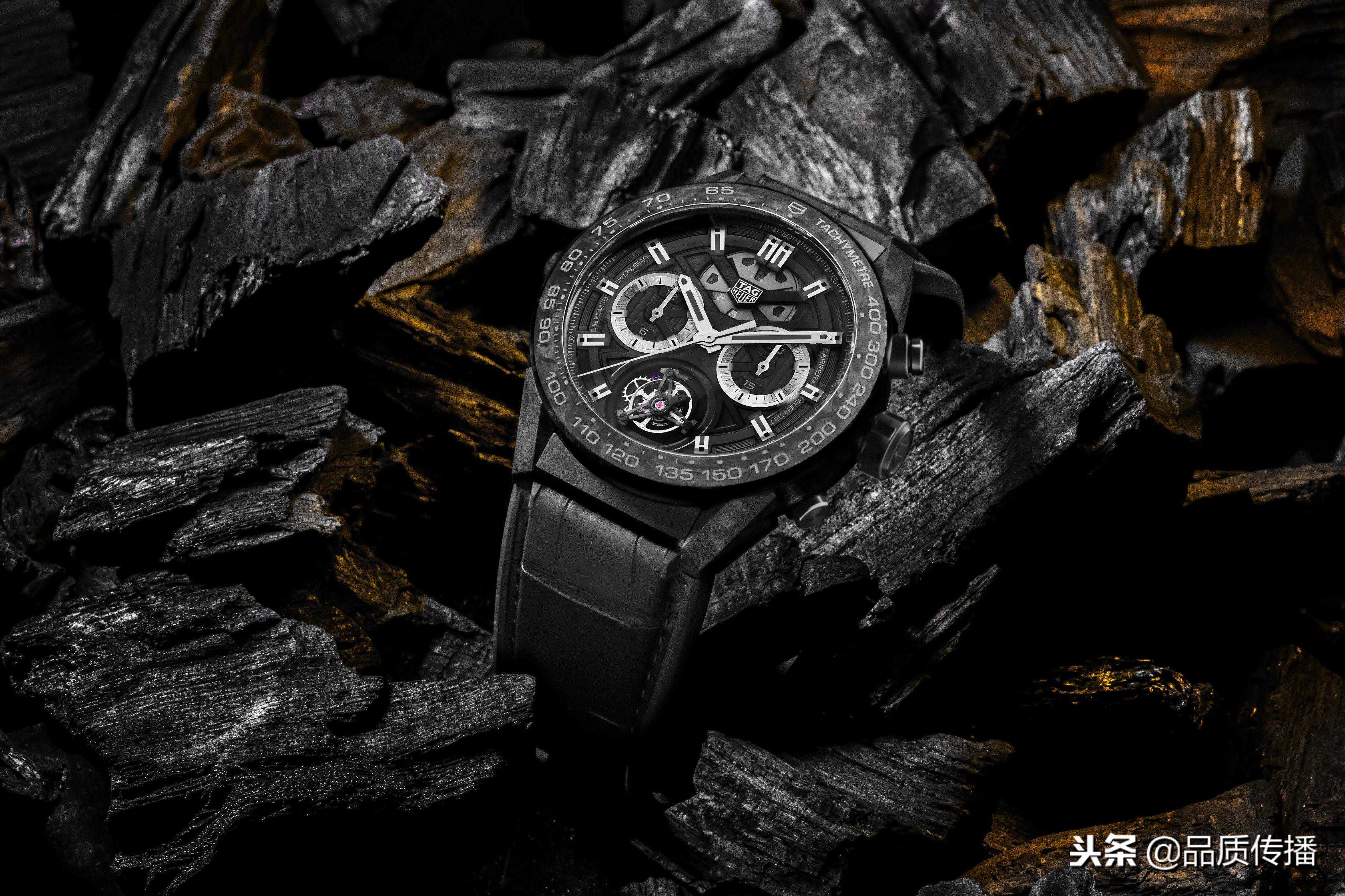 泰格豪雅(TAGHeuer)卡莱拉系列碳纤维陀飞轮幻影腕表,轻质钛表壳+碳纤维表圈+蓝宝石