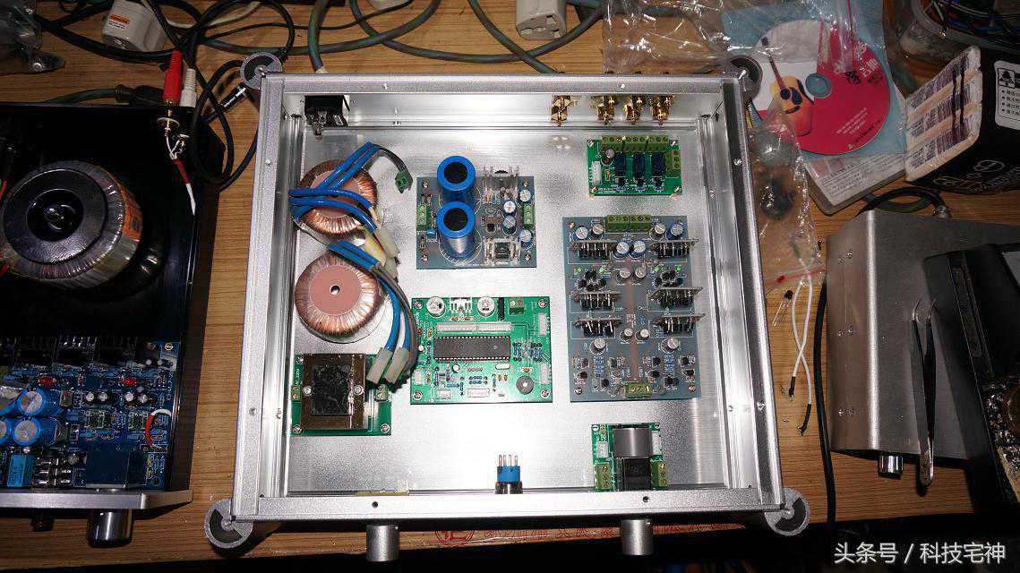 全家福,原来的滤波板用的是伊娜的电容,我不喜欢,于是换上飞利浦的BC