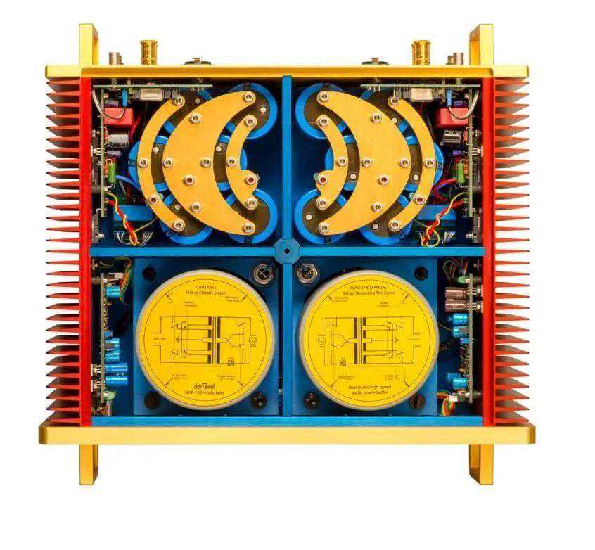 会以「对」来计算是因为AB类放大属于推挽放大,功率晶体必须成对才能工作。一般后级常见十对、二十对的功率晶体并联放大,但darTZeel却坚持越简单越好,所以每声道只用了二对ONSemi大功率晶体。darTZeel的老板HervéDelétraz说他从1999年开始就使用ONSemi的晶体,认为是他所见最好的功率晶体,后来很多厂商也跟进使用。