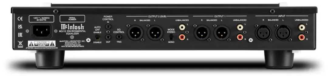 MQ112支持模拟、单端输入,并各配有2组输出。用户能以单端输入与前级相连,再以平衡输出与后级相连。而且2组输出,允许在两个房间里播放相同的音乐,或是连接两台后级做双功放输出,再就是将多一路的输出传给超低音,实现2.1声道的Hi-Fi欣赏。