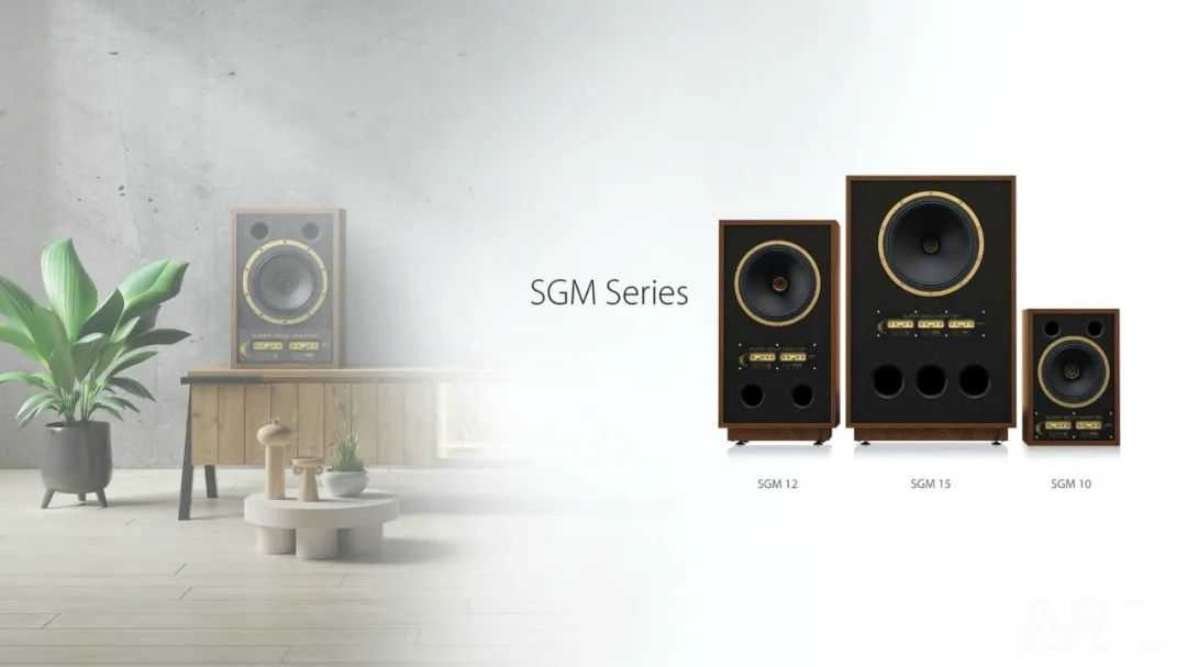 新系列作为Hi-Fi用途,以无源音箱的形式出现,搭载的自然还是其代表性的二分频同轴单元,即DualConcentric结构——将装有导波器的高音放在中低音单元中央,以点声源形式发声,同时类号角结构,也让高音均匀扩散,令聆听范围增大。SGM15、SGM12和SGM10都搭载1.3英寸铝镁合金高音,但纸盆中低音的口径各有不同,分别是15、12和10英寸。
