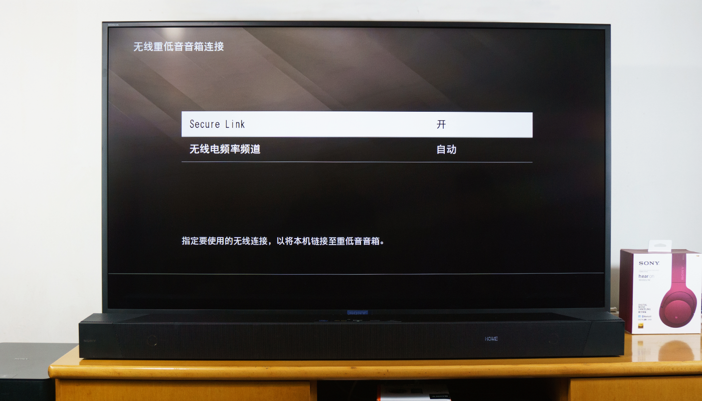 例如,在首次连接无线低音炮时,得在“系统设置”中将SecureLink选至开启,随后再按下低音炮背面的SecureLink键,按画面指示进行配对。