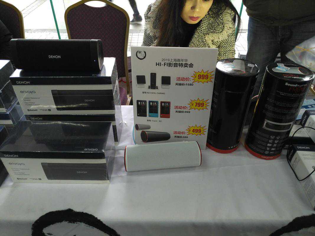 隔壁桌上的是杰士最近很好的有源音箱,支持蓝牙和APT-X,我先听了听他的有线播放,但现场太吵了,基本听不太清,就感觉不像传统的HiFi箱子更像是杰士HIVI家庭影院的那种味道,偏中下盘。不过杰士现场的帅哥还是很不错,业务熟练,讲解到位。关键是在耳机节上我看到过,当时是在小乌托邦哪里负责的,真是猿粪啊。用自己手机连接杰士的这个有源音箱也很方便,声音表现和之前有线的差不多。关键是这个价格比我双十一曾经看到过的2999还便宜啊。