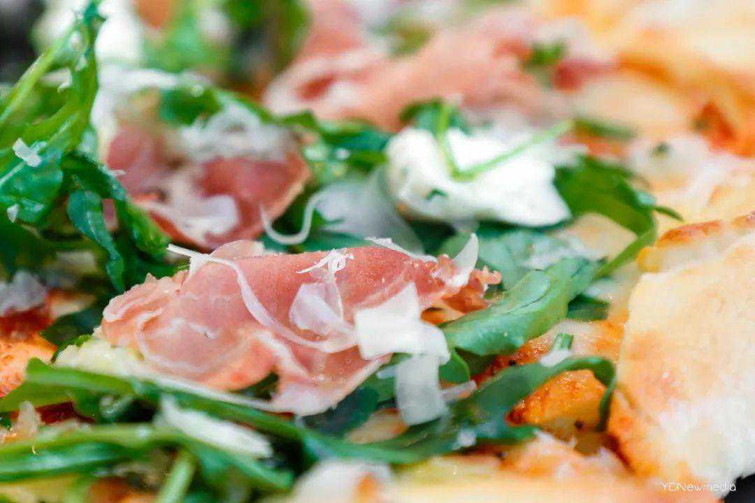 披萨入口,火腿似有若无的甜味和果味,与芝士、芝麻菜带来的浓郁交织,每一口浪漫中都裹着无法克制的肉欲!
