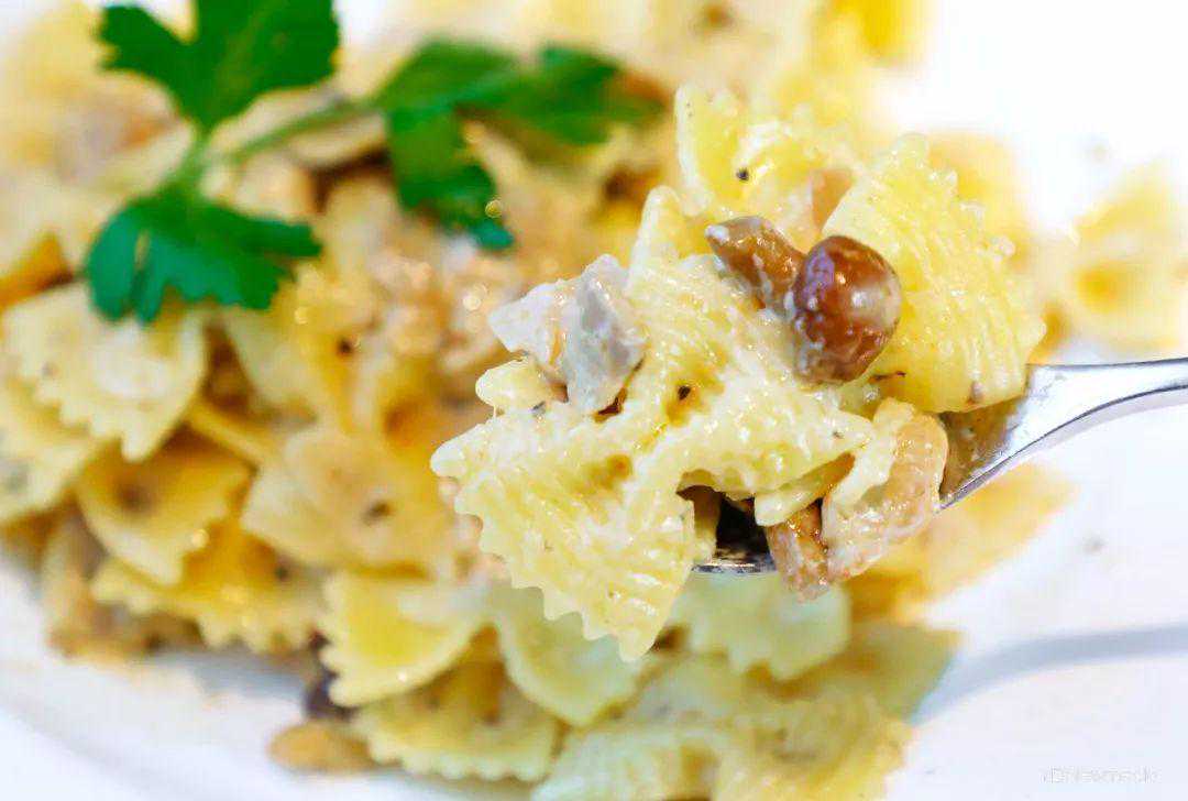 『意式野菌蝴蝶面』上桌后,一股神奇味道迅速弥漫,原本不爱吃蝴蝶面的瘦瘦食指大动,一碗面很快见底。
