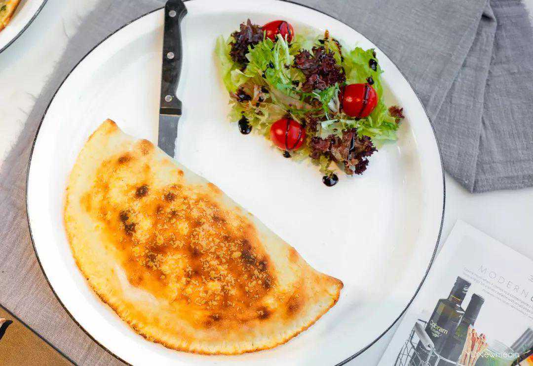 披萨做成饺子的形状还是第一次见,吃了会大笑的『幸运珍心披萨饺』,被橄榄油和巴马臣芝士洗礼后的外壳金黄酥脆。