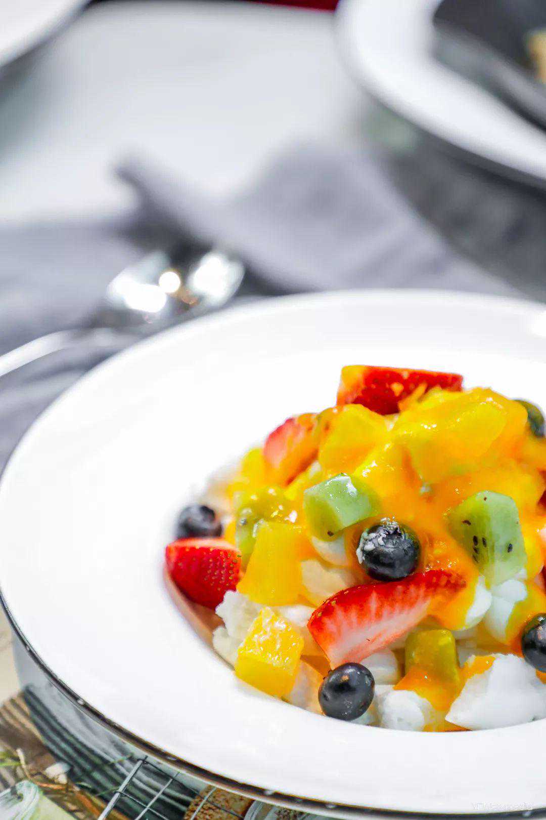 『奶油水果蛋白饼』与众不同的是酥脆且富有嚼劲的蛋白饼加入,赋予了嘴巴一趟奇妙旅行。
