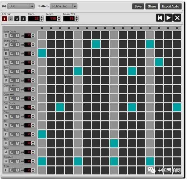 蛮多素材可以选择的网络鼓机,还可以将你做完喜欢的鼓点音色选择不一样的格式档输出!