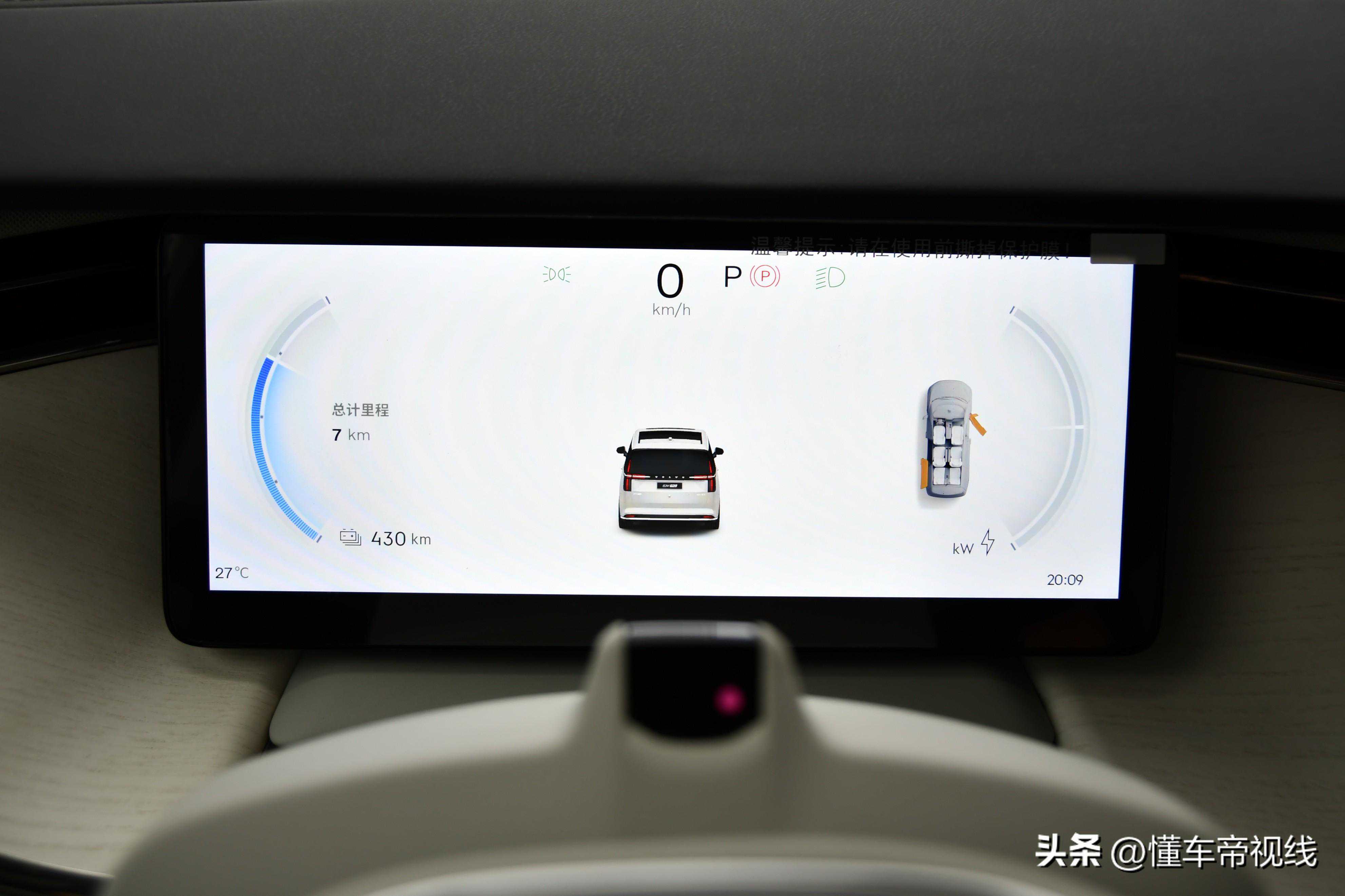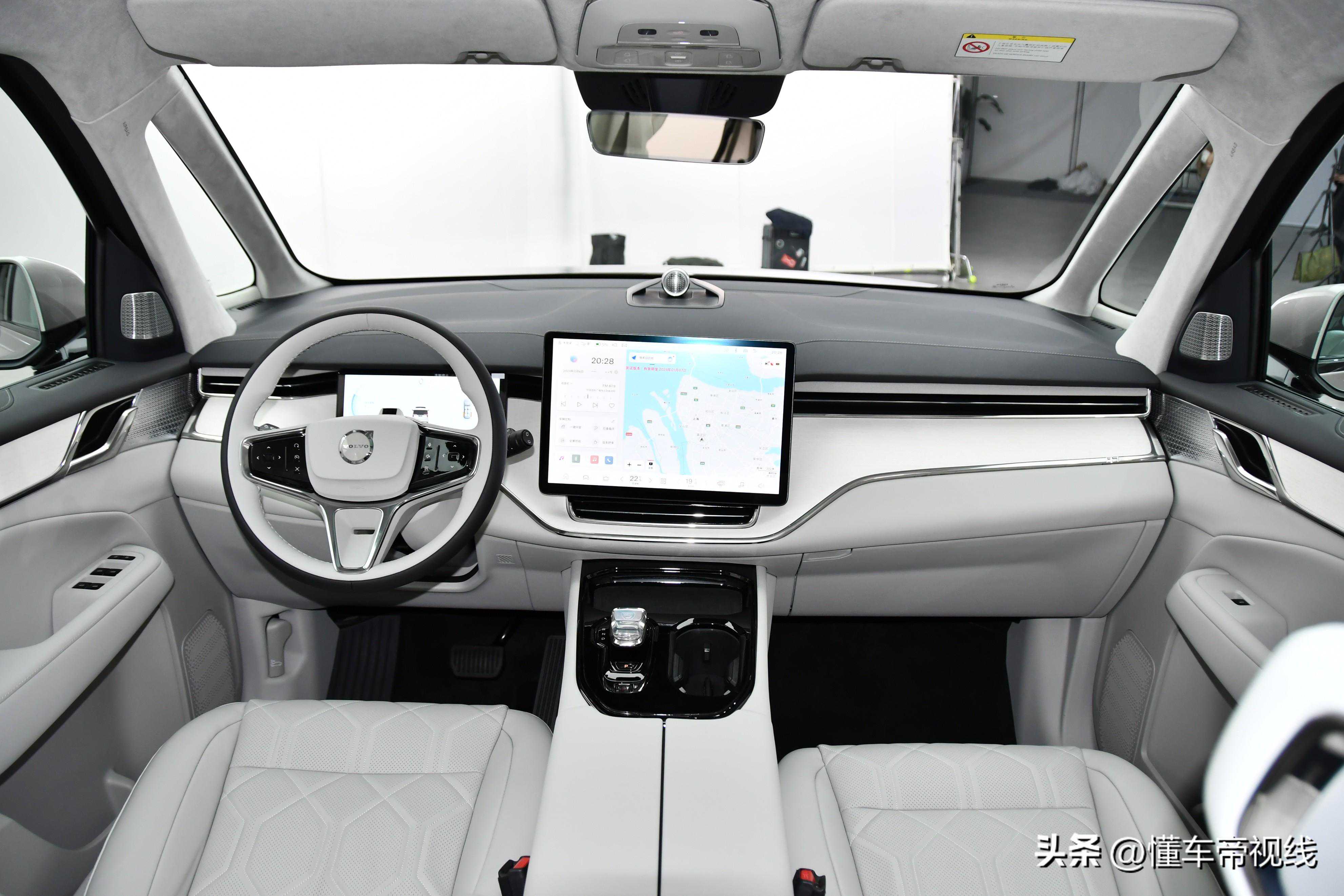 三辐式多功能方向盘同样采用了皮质包覆,多功能按键则应用了触控设计。该车还搭载了大尺寸的悬浮式全液晶仪表以及悬浮式中控屏,中控屏还采用了偏向驾驶位一侧的设计,更利于驾驶员查看屏幕上的信息。此外,沃尔沃EM90还配备了水晶挡把,为车内增添了一定的精致感。