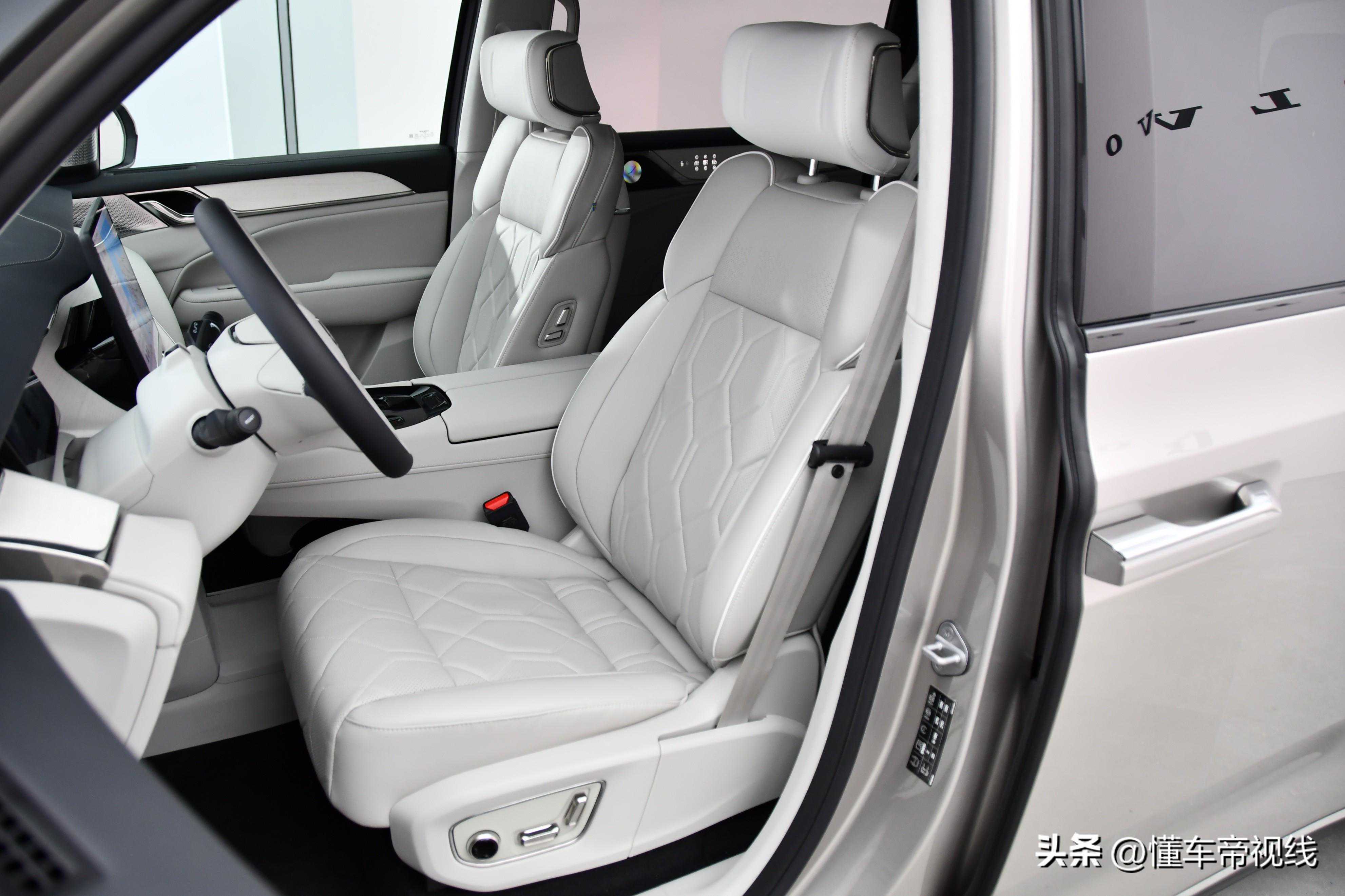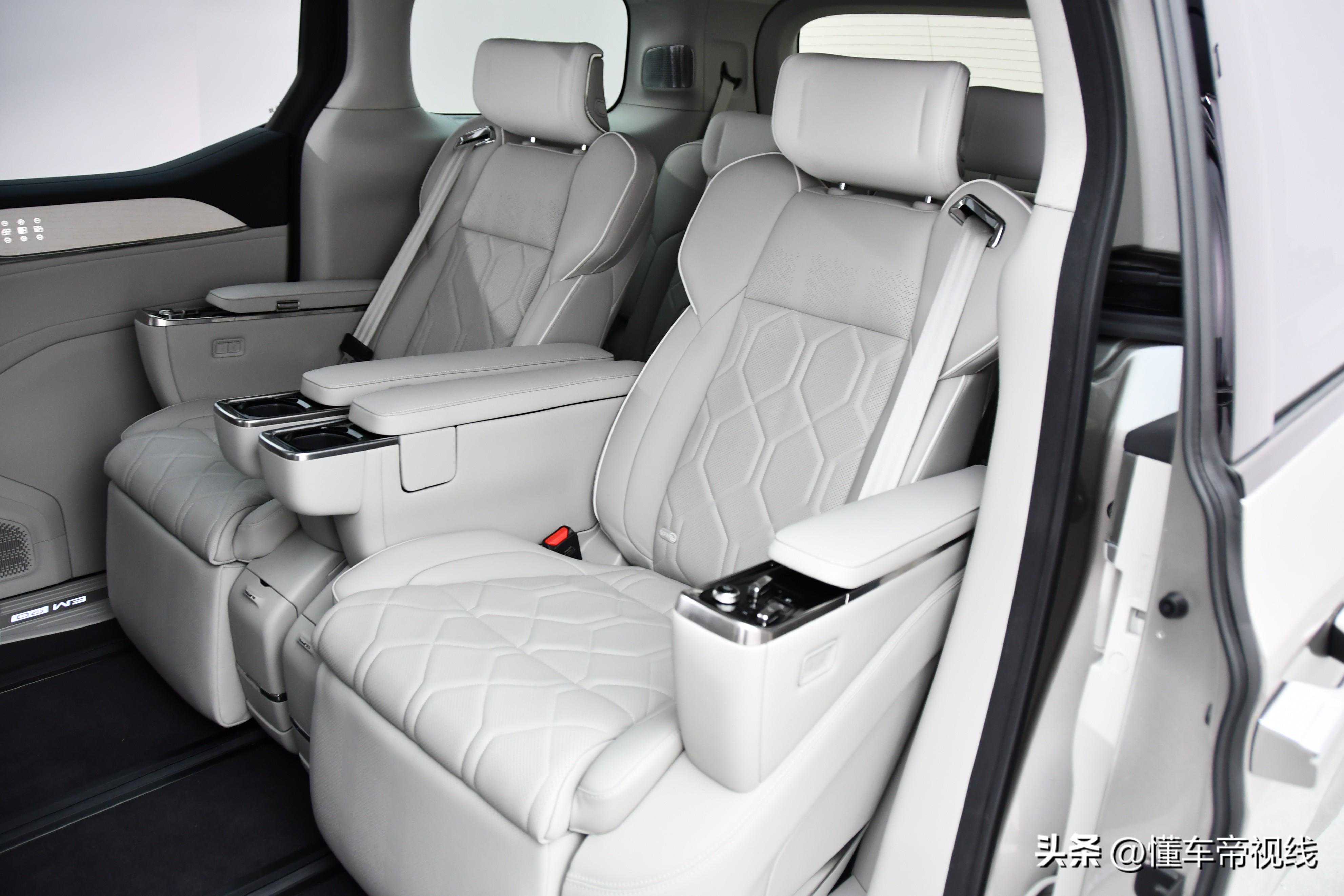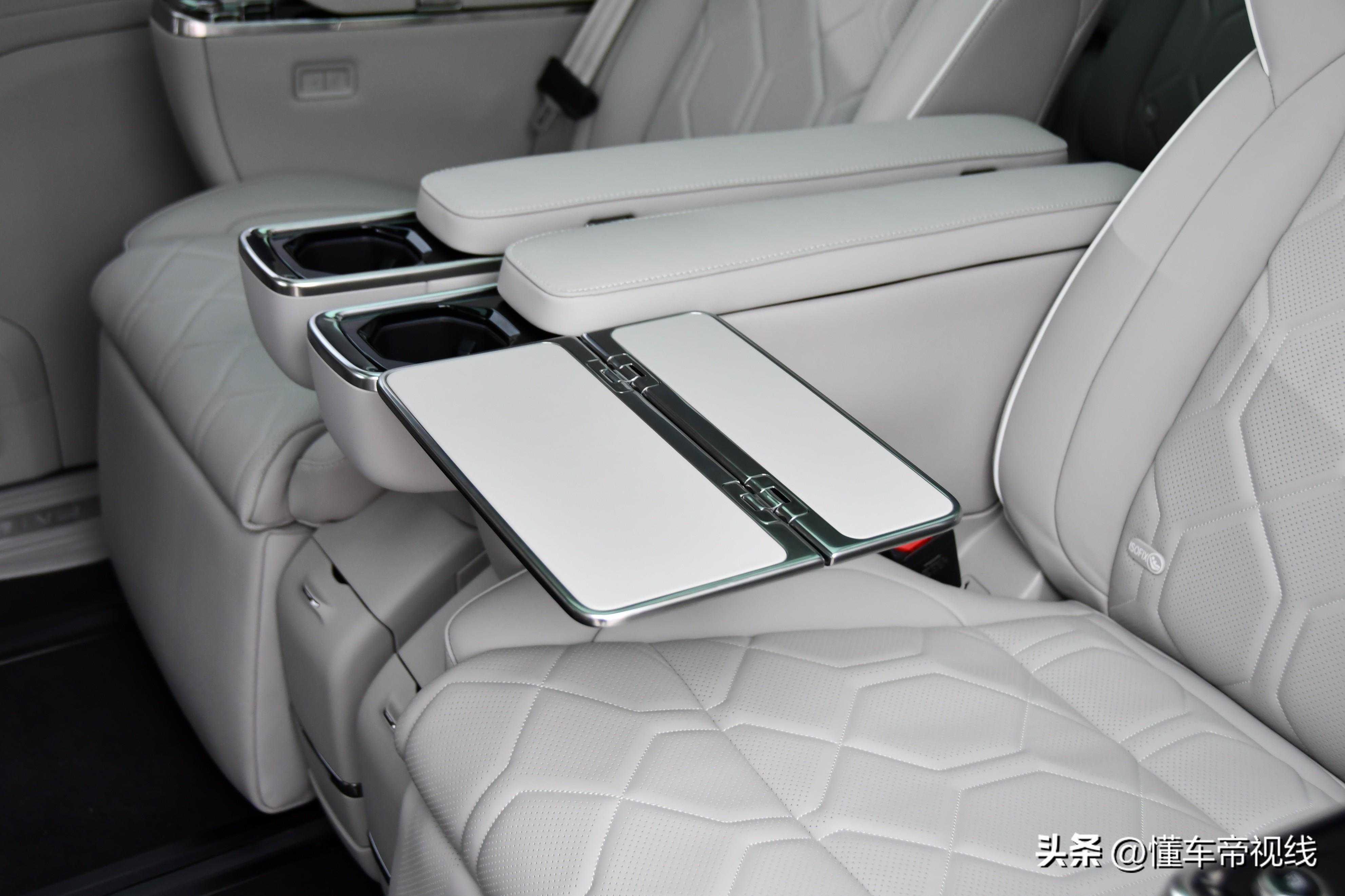 沃尔沃EM90车内采用了2+2+2的6座布局,第二排搭载的独立航空座椅配备了电动腿托、通风加热等功能,而隐藏在座椅扶手内的小桌板,在使用时有着更好的便利度。而在每个第二排座椅底部,还设计有USBType-C接口。实拍车辆还在第二排还配备了一块大尺寸的吸顶屏,能够为后排乘客提供更多的娱乐功能。