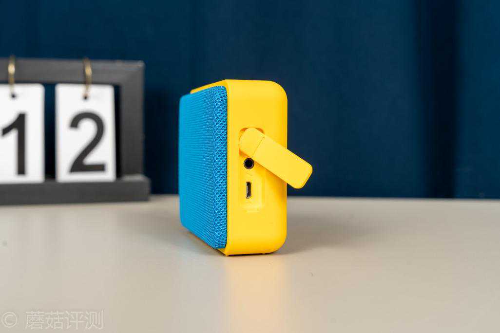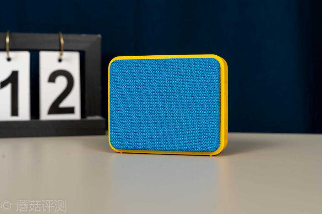 ▼蓝牙音箱的外观非常漂亮,并且有多种配色,均是撞色设计,我这里选择了蓝色和黄色的撞色外观,看起来非常有活力。音箱的前面直接就是一整块保护网,其内部就是扬声器单元