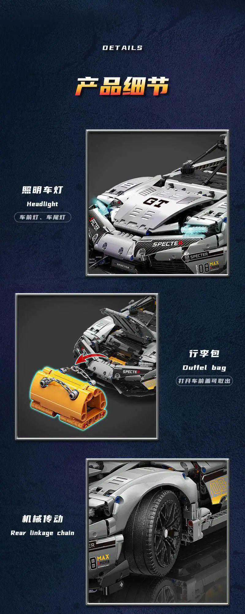 从下半年推出的超跑类产品可以明显看出整个中国积木的重中之重就是跑车,1年出了119款科技跑车,太夸张了。