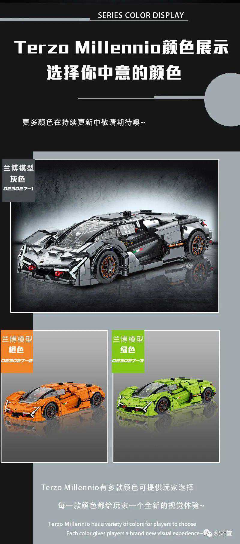 11款,以积械狂飚一个系列,不停出跑车,其中的二台1:8跑车是作者授权,很好看!