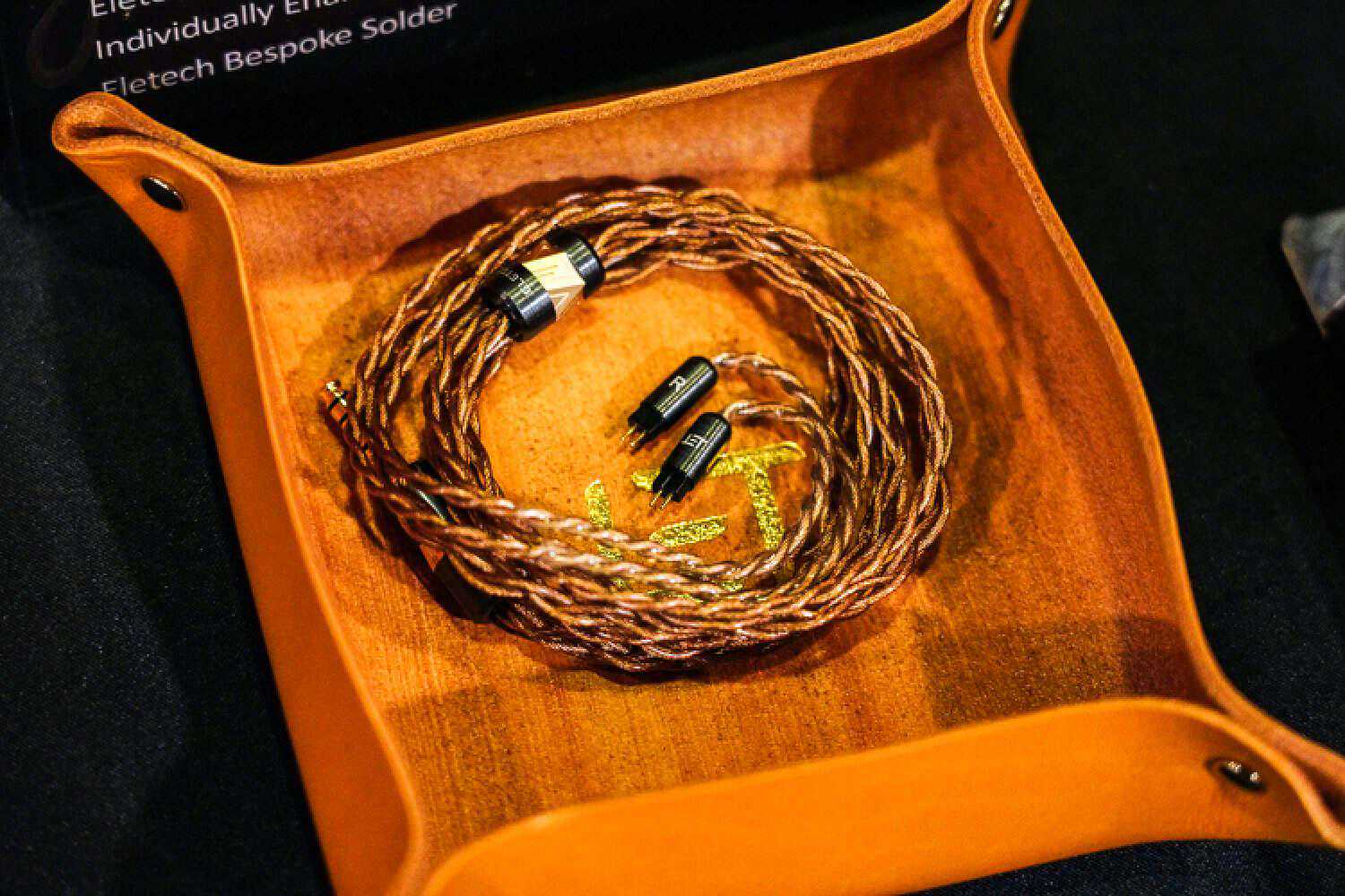 新的旗舰级线材亚当,金银合金、镀金银、镀金铜三重混编,在声音上总算是走了一回比较相对中性准确的路线,比Eletech其他的线材都有些鉴赏门槛一些,回顾他们过去推出过的一些高价线材,比如精致华丽路线的伊利亚特、浓郁人声的伊涅德、宽松柔顺的劳拉,这次的新旗舰非要找个参照的话,可以理解为是补足了伊利亚特的厚度、高频控制力更好、综合素质也更好的、不那么挑搭配的版本,声音很容易和现役大部分的旗舰塞搭配起来、在不明显影响走向的前提下提升全频段的结像清晰度和声音的空间感、延展度。