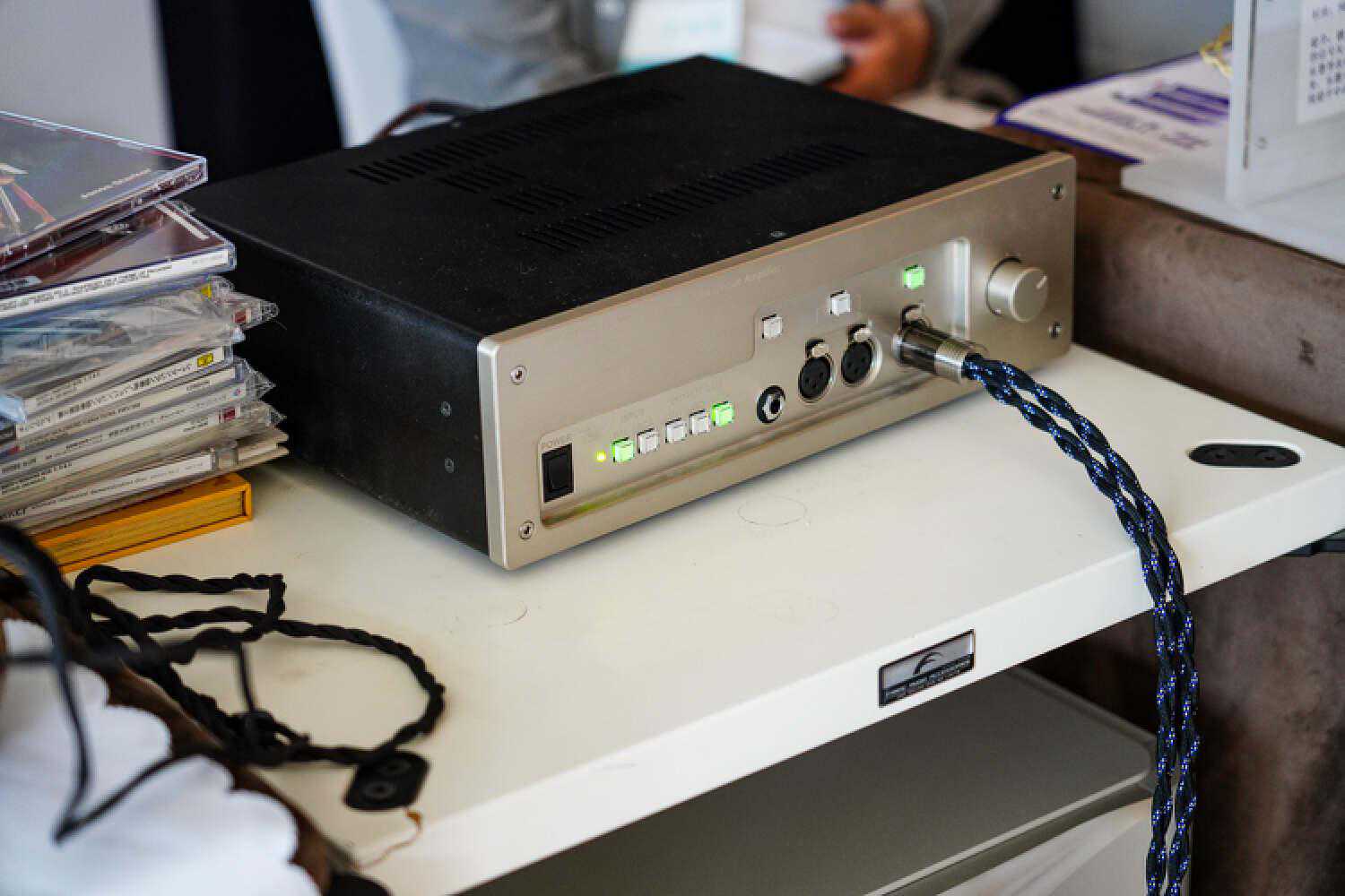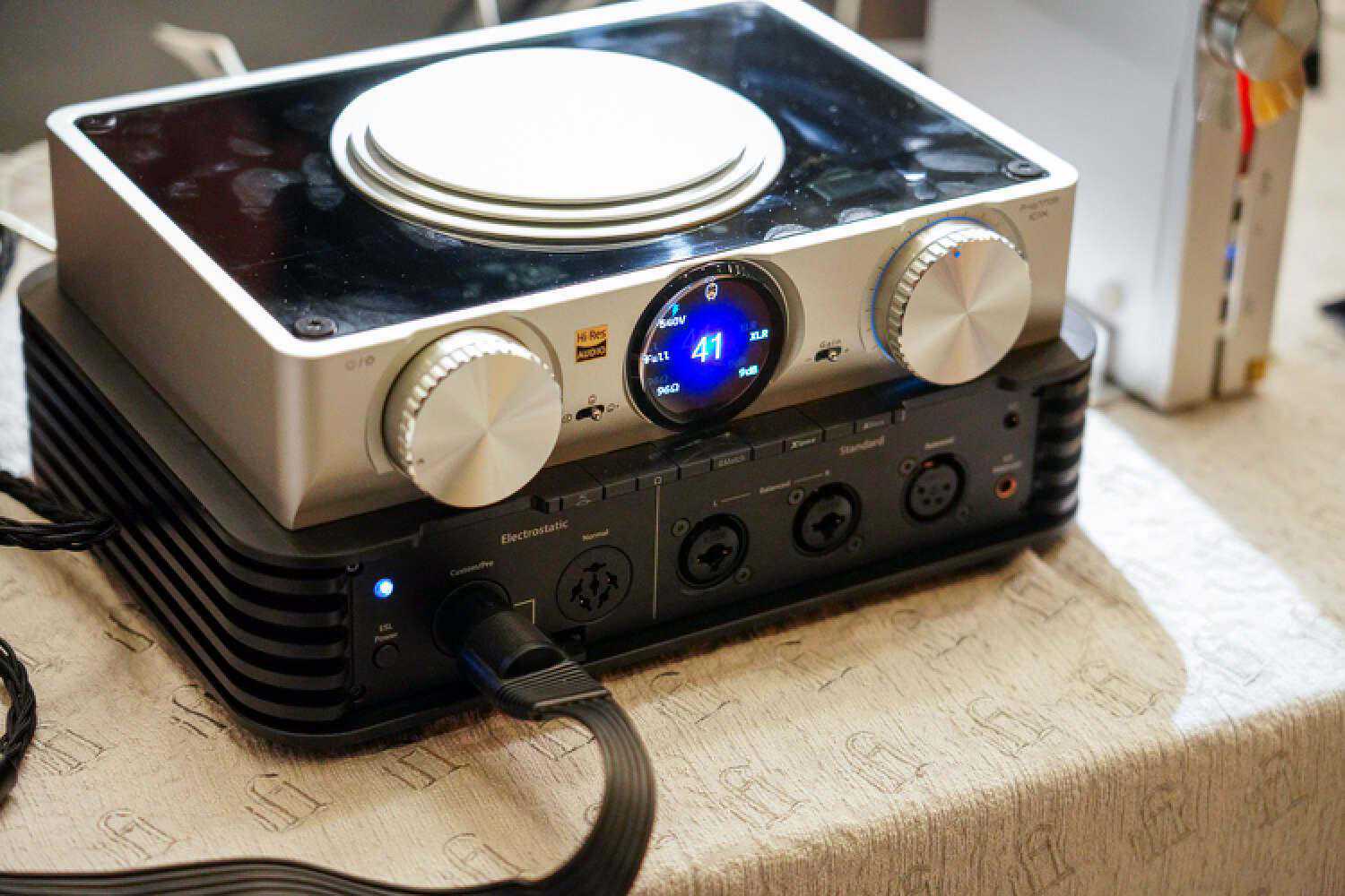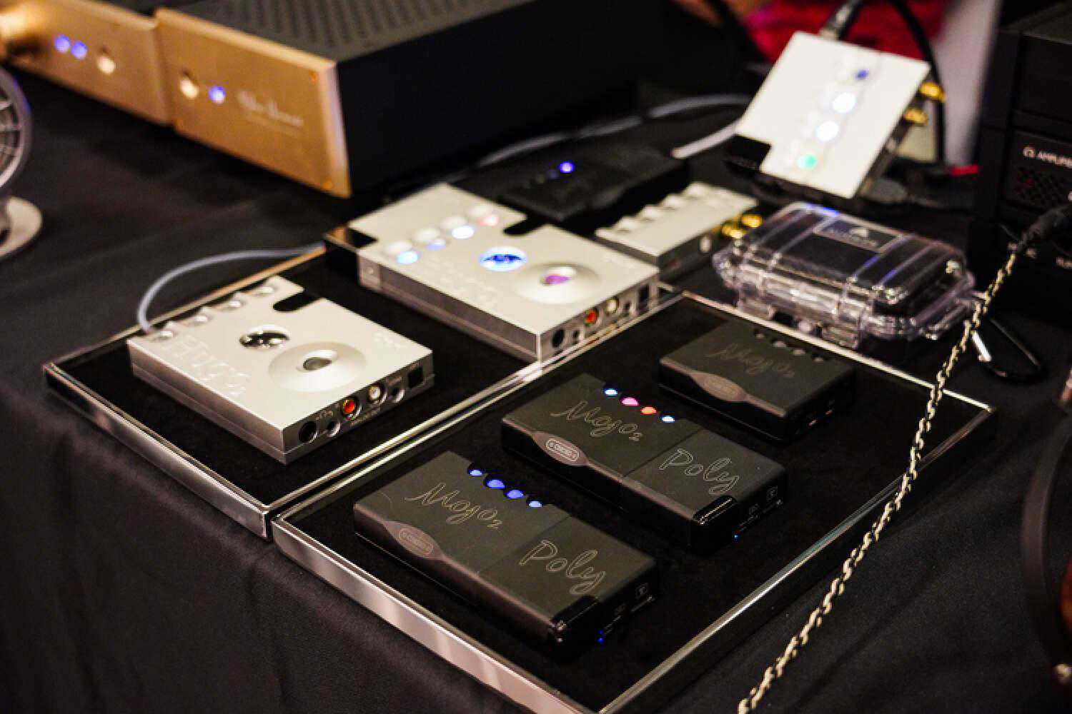 iFi会推出一个全功能类型的耳放,集耳放和静电放一体,而且在背面设置了插卡式的调整方式来搭配不同类型的静电型号,现场也摆满了各种静电型号可以搭配,应该算是目前行业里很难见到的那种“断崖式创新”?此外,那几根电源线我很有兴趣,只是现场仅作展示用,我作为iFi家各种电源配件的用户,对他们家的Nova/Supernova线材一直都有很好的印象。
