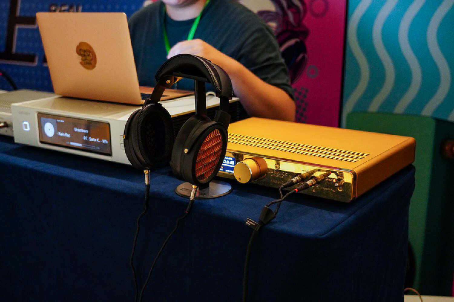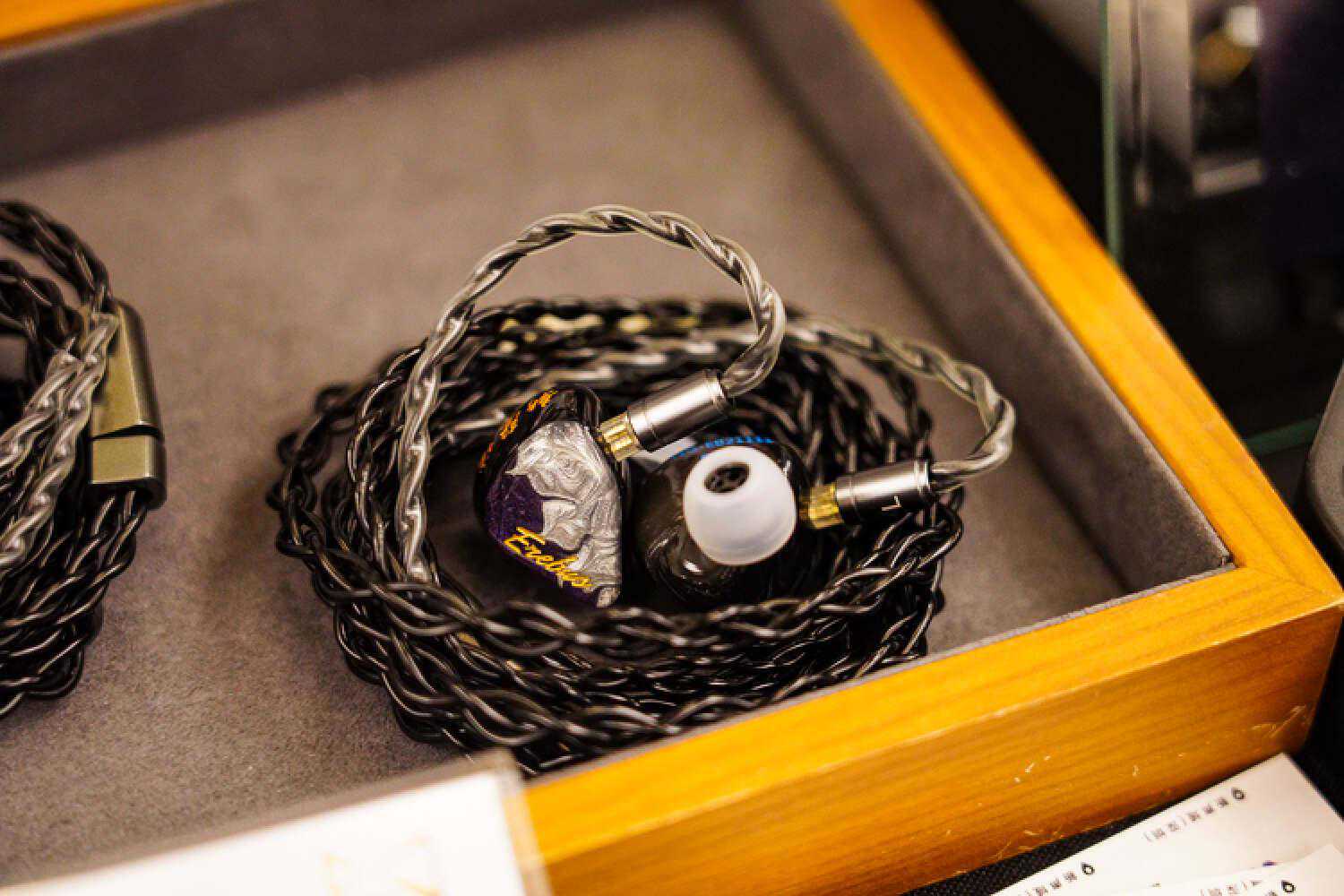 Tago的头戴就不重复介绍了,这次我抄起他家展台上的一个新代理的塞子听了下,声音颇有意思,品牌是脚Maestraudio,东西就卖几百块,但声音非常有乐感,就是这个卖相和线材有些不敢恭维了,如果不想追求内卷素质声儿但想买点好听小玩具的玩家们可以观望一下。