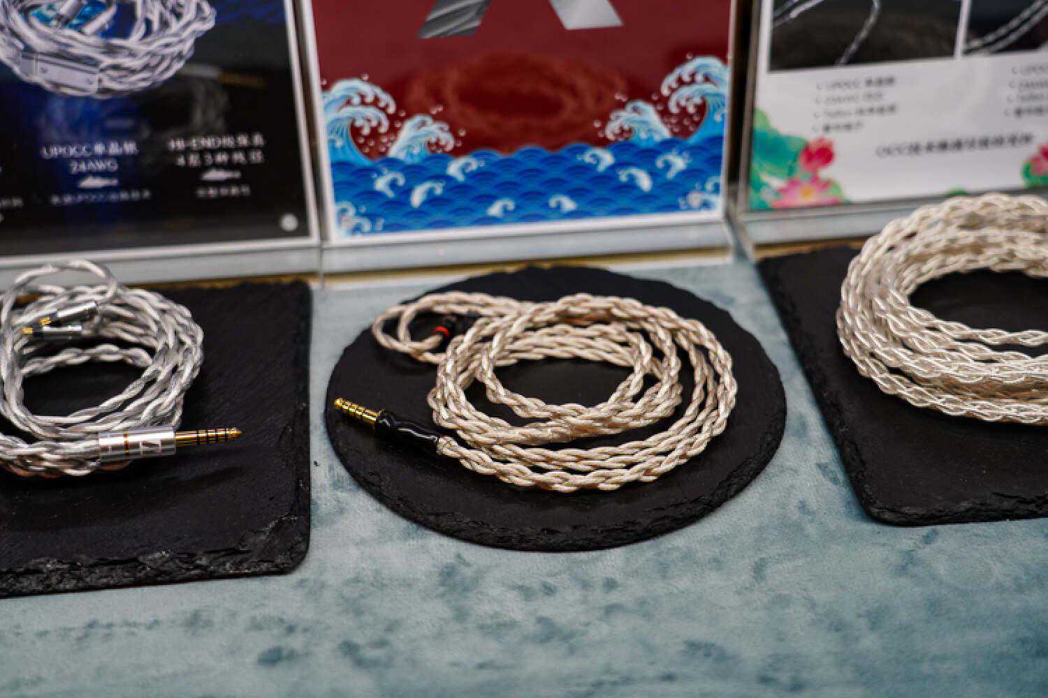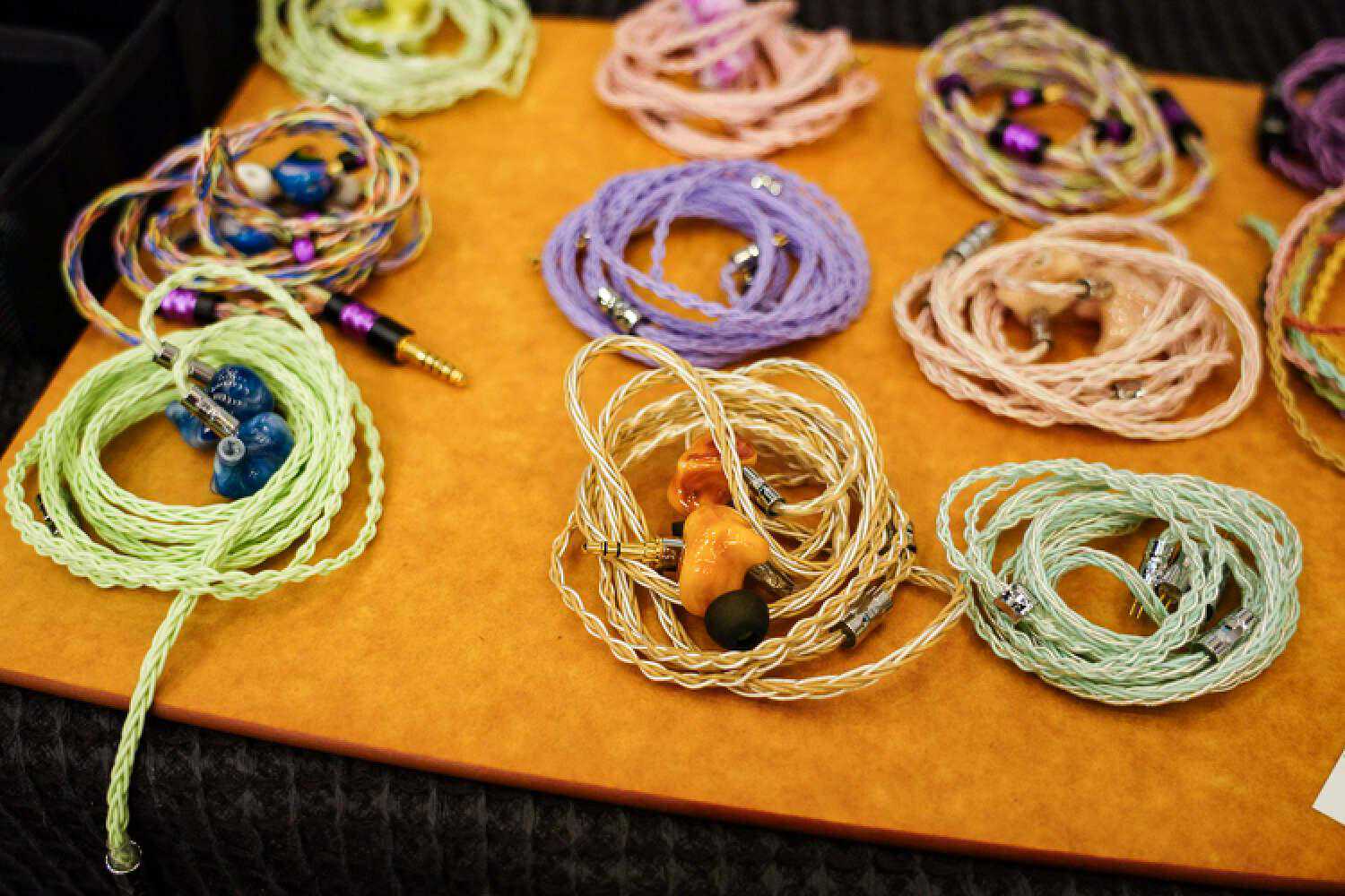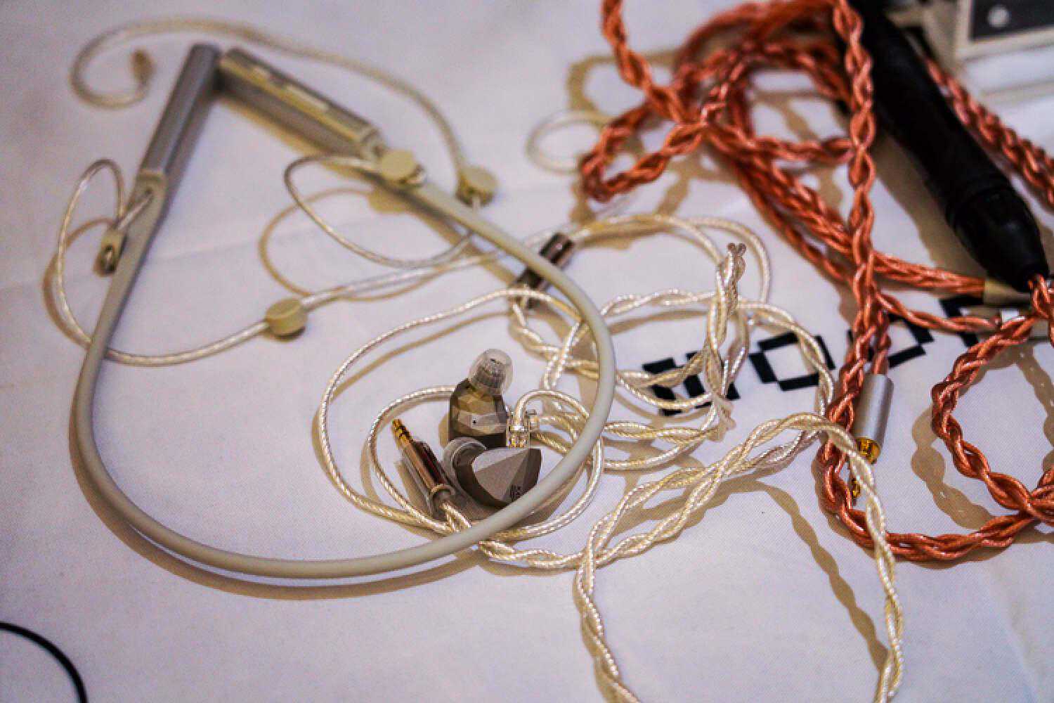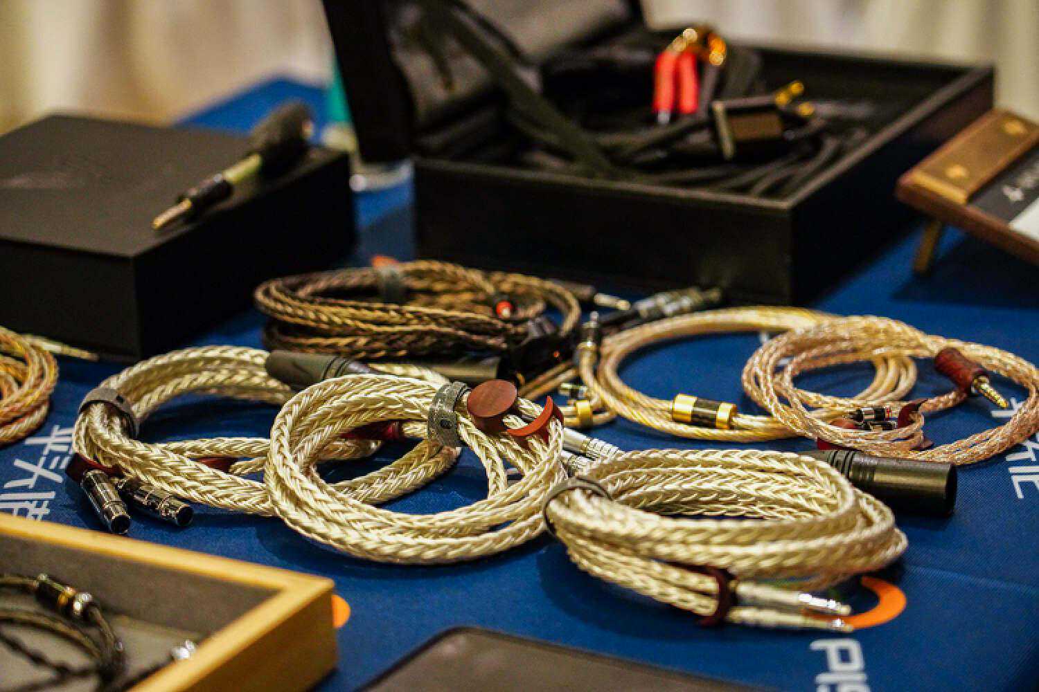 万隆这次带来了一个新的超旗舰线材,记得没错应该是单晶银和金银合金材料,就是图中这个没有接插件的工程样线,是我目前心目中耳塞线素质的T0了,除了低频不算很出彩以外,信息量、结像、空间感、透明度、以及非常华丽但控制力很好的高频延展度,搭配VKRP这种本身高频很出彩的塞子并没有起到适得其反的效果,而是锦上添花的那种好听,而且它目前在高频信息量的表达方面在耳塞线里暂时是独一档,售价应该会在2W+。