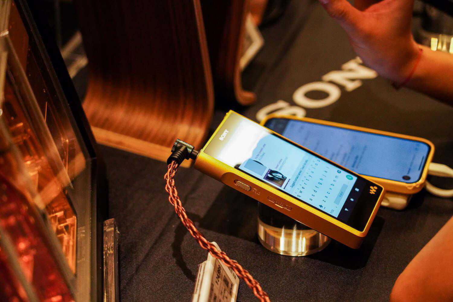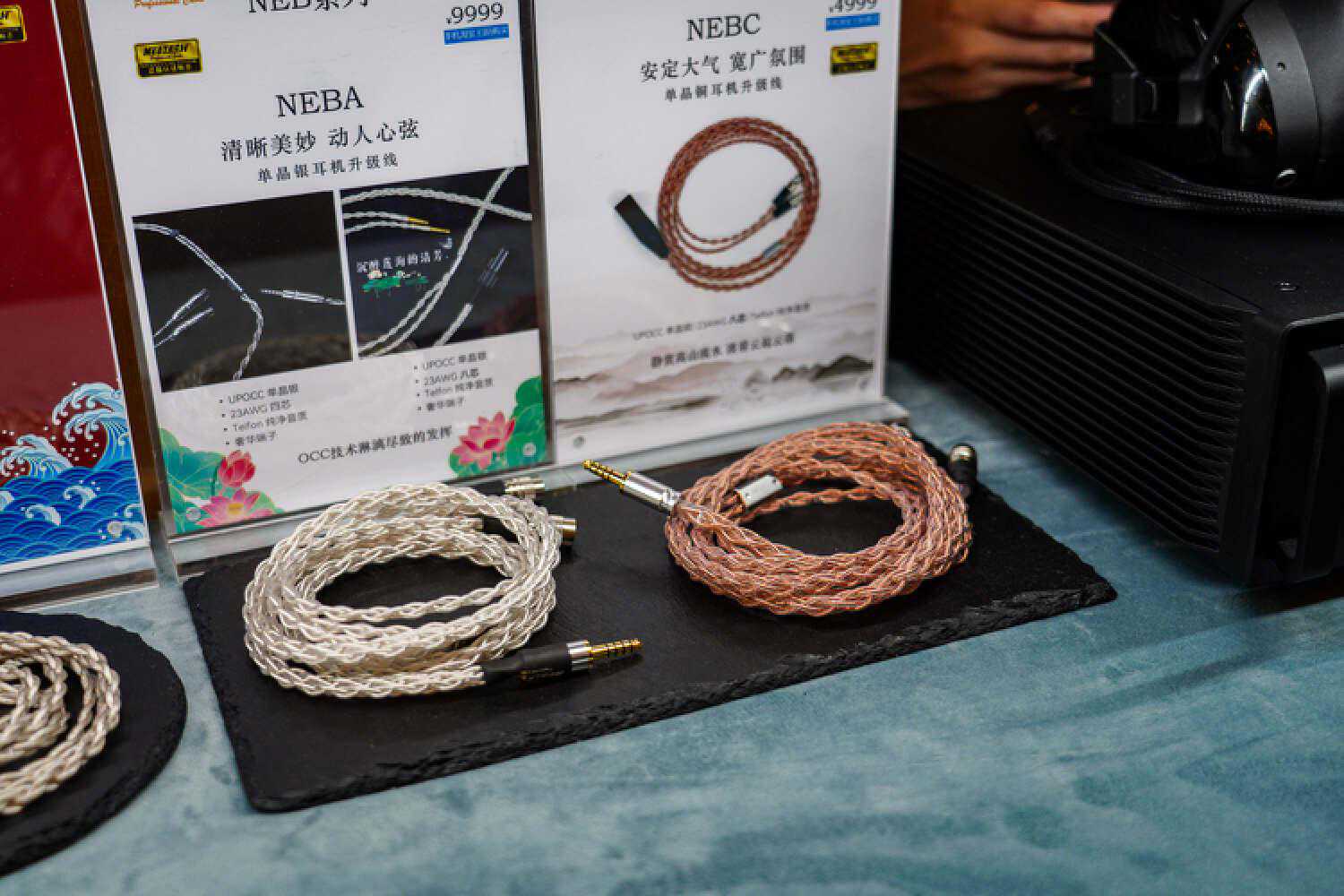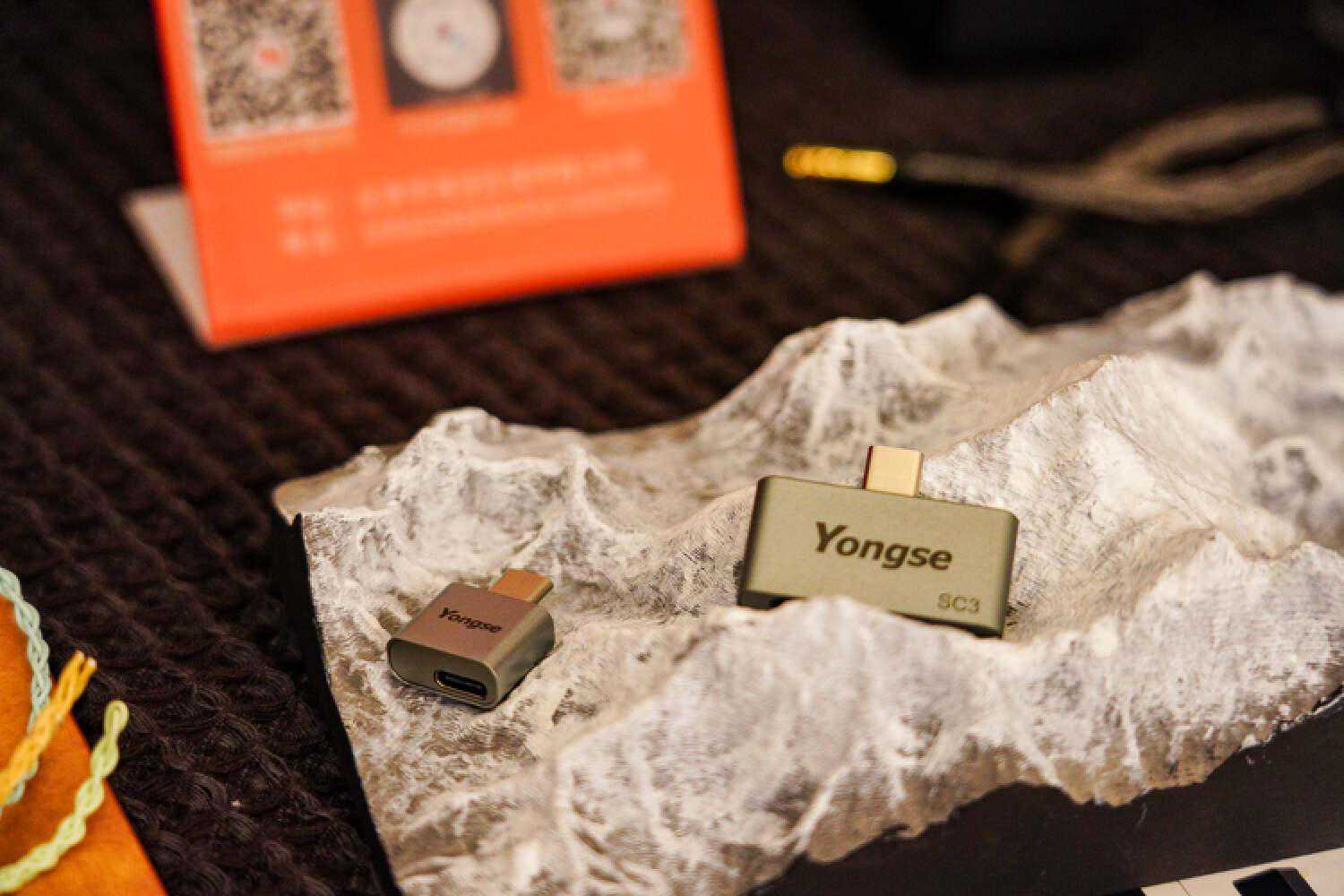 扬仕这边新品不少,李总特地强调了有根线不错,让我仔细听听,就是图中的这款,单晶铜、纯银镀金、纯银镀钯各种材料什么的混编,反正你们能在很多那种贵价线材上配的材料他都给配齐了,价格在4K。这根线我特地带回房间仔细听了下,声音比之前的石墨烯银镀金那种线材要更加细腻圆润一点,虽然也是那种偏流行、调音略往中低频去走的路子,但透明度、空间感都好很多,结像也不那么肥大了,即便是配超旗舰级的塞子也很搭调。此外,对蓝牙出街前端有需求的朋友们也可以看看他家的YS-B1蓝牙解码耳放,用的是QCC5121方案,配9038(没标注是Pro还是Q2M,默认是Q2M),体积小的同时也配有4.4,定价799元。