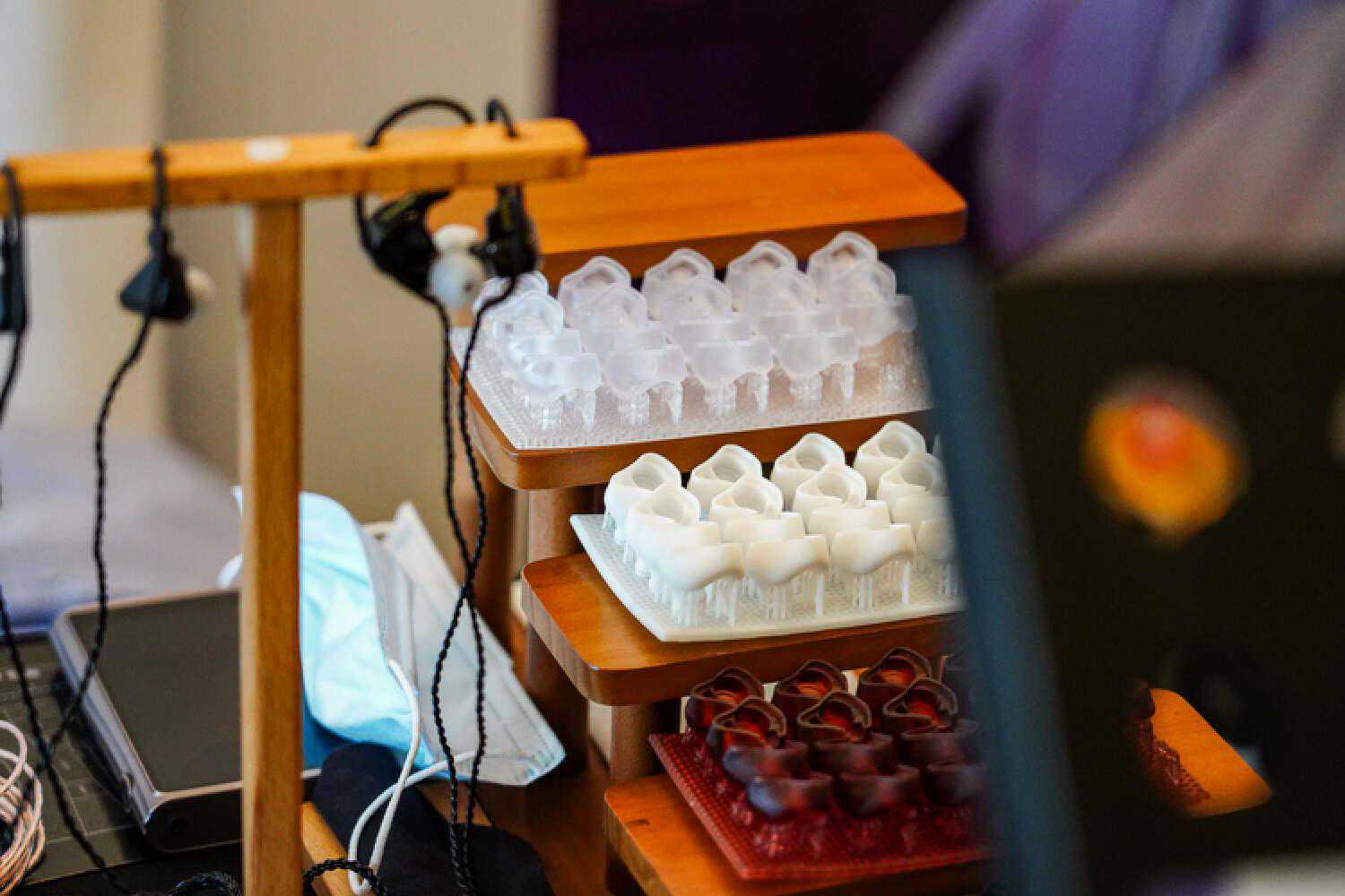 平板头戴目前的声音做出了一个非常清甜的、细腻的、好听的中频,如果拿耳塞做参照物的话会有点像是他们自家当年的DK3001Pro那种甜润感、只是头戴嘛,毕竟更扎实一些。目前的高频部分也是有些僵硬、延展度和亮度有余而不够松弛流畅,会比较吃前端的搭配,低频的结像位置也稍稍靠上了点。作为首次亮相的工程机来说,这个东西的中频已经足够吸引我了,很期待完成版的声音。