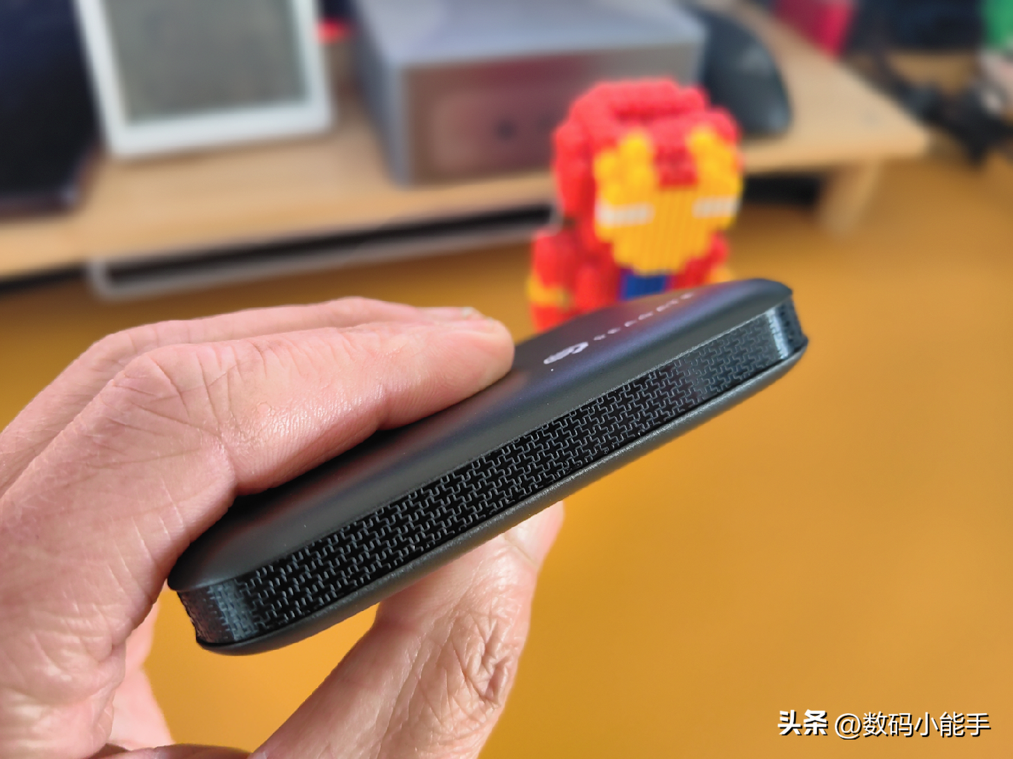 它的三维分别为94x60x15mm,如果你没有概念可以通过上图的比较,它的大小就和一张标准的以银行卡差不多,并且厚度比我戴保护壳的iPhone相近,可以说是相当的便携了!