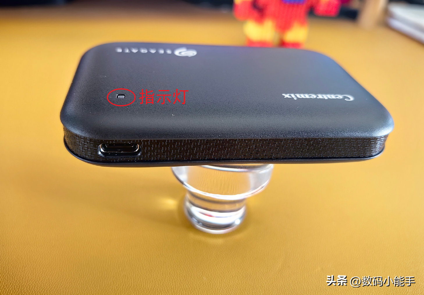 它的数据接口位于产品的左上方,采用的是目前主流的Type-C接口,除了带来高速数据传输的便利,还拥有更广泛的适用场景。同时在它旁边还有有一个工作指示灯,让我们随时知晓硬盘的工作状态。