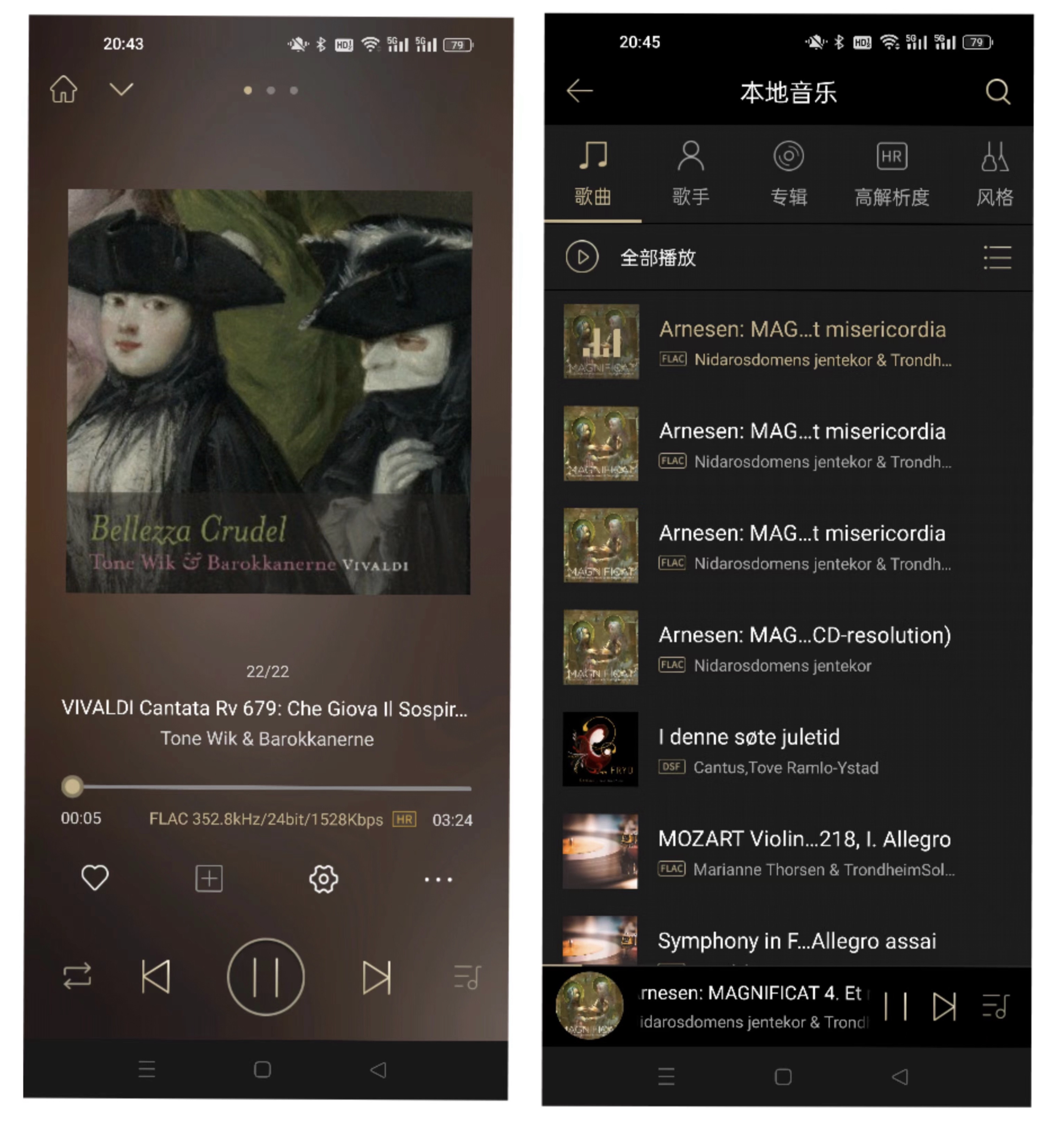 APP还方便对USB文件进行整理和播放,这里可以看到多种高清格式都能正常识别和加载封面,最高可以支持384kHz/32bitDSD256解码。