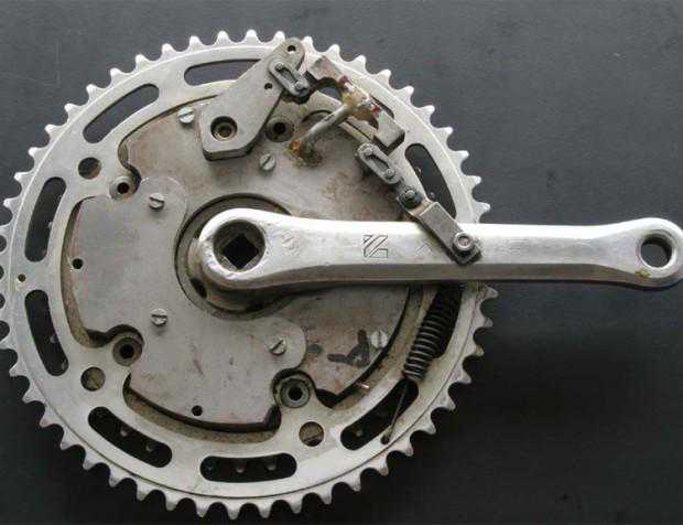 上图右侧的款式为正常的Dura-AceDA9000牙盘,而左边的则有些不同,却是许多职业车手在比赛中经常使用的款式。