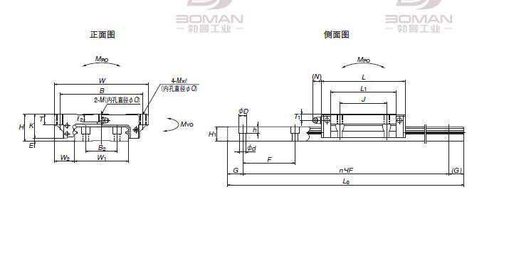 型号NSKLW50EL直线导轨尺寸图: