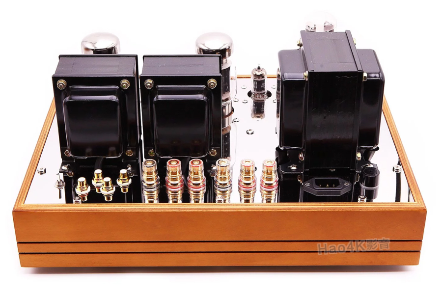 Elegant-32A3Gold标准配备Electro-HarmonixEH2A3功率管,或者可指定大陆曙光2A3C、美国Psvane2A3。信号管标准配备GE6463,可加价选购Telefunken6463,至于整流管部分,标准配备Psvane5U4G,但只要是5U4G管,全部可以通用。音箱输出接口标准阻抗为4欧姆与8欧姆,但管迷为了体贴音响玩家的需求,可以订做6、11、16欧姆输出接口,如此一来老11欧姆与15欧姆LS3/5a的玩家,就可以找到最登对的音箱阻抗匹配了。