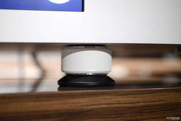 底部角锥也是能调整高低的,请务必使用水平仪从底部就开始校正水平,这个角度也可以看到承板的厚度极厚。这个承板外表看起来没有什么特别,但是其使用了多达45样的高质量组件与8种不同阻尼条件与特性的材料,以CNC与手工制做而成。